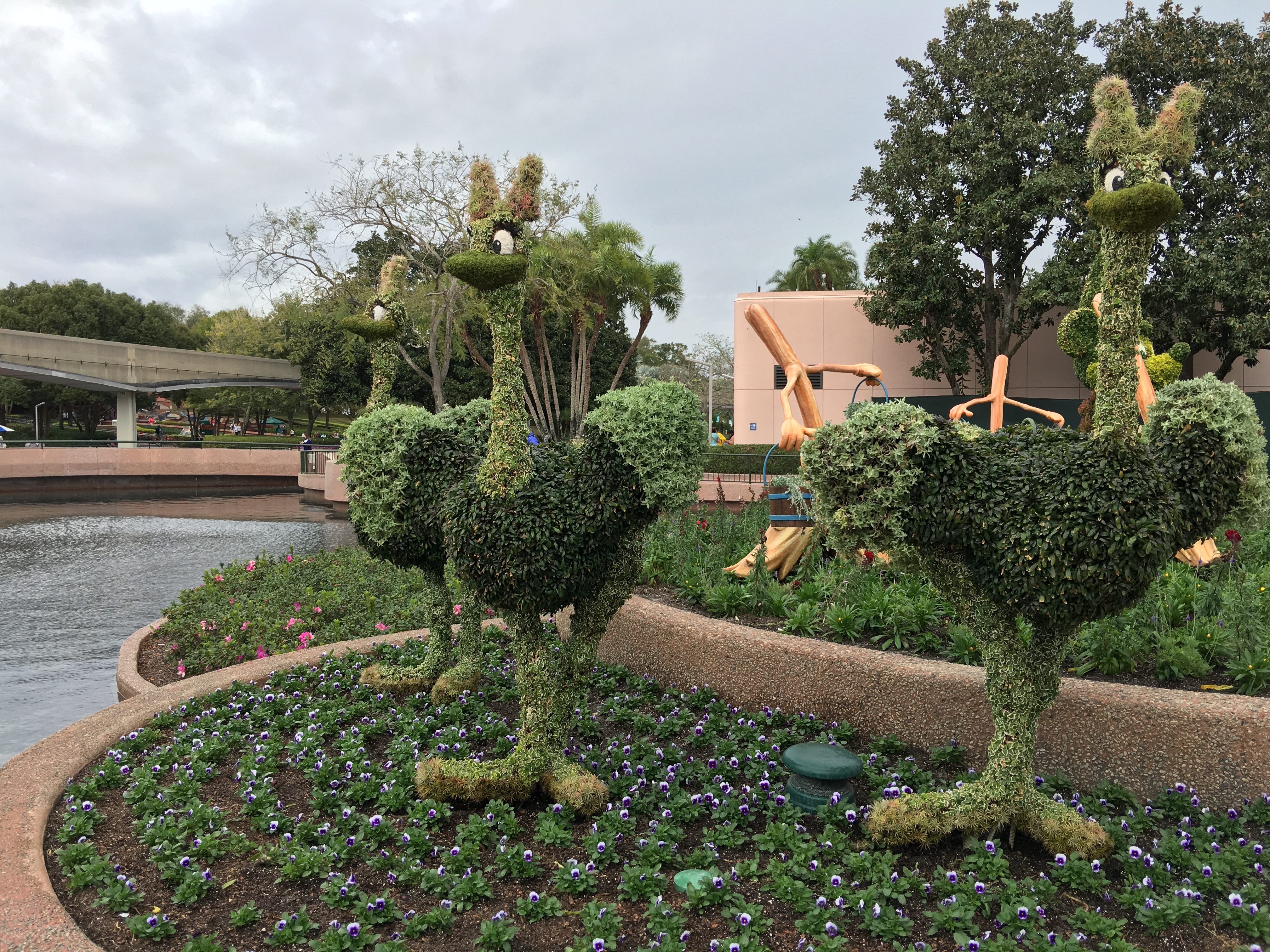 Most of the topiaries and garden display throughout Future World are returning favorites including the Fantasia grouping, Butterflies On The Go presented by GoGo SqueeZ, and the Cactus Road Rally play area featuring Lightning McQueen and Mater from the Disney Pixar Cars films.