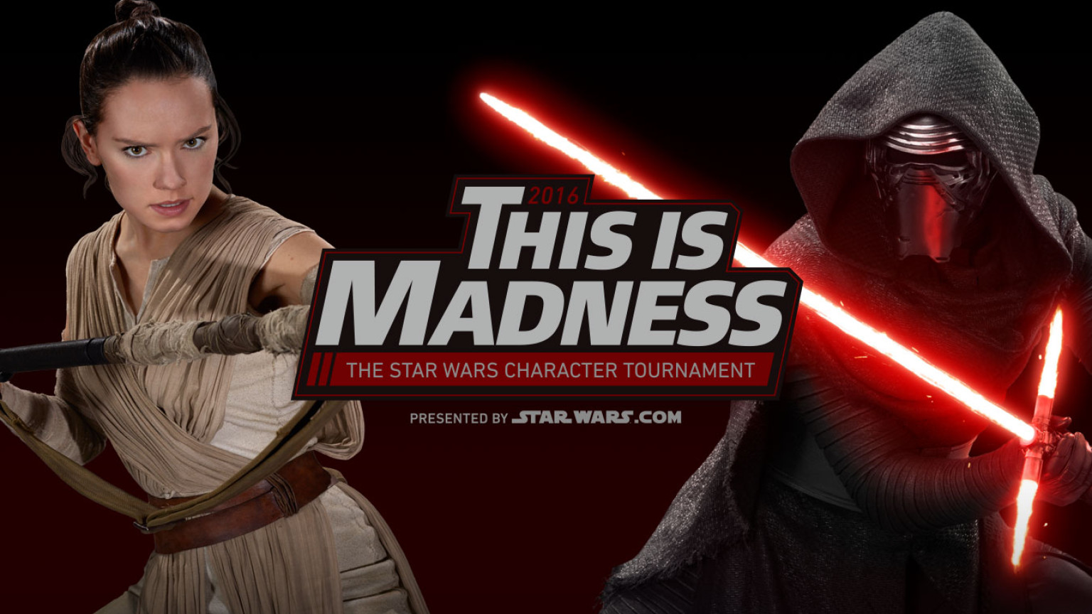 In This Is Madness, characters are divided into two conferences: Light Side and Dark Side. Jedi, scoundrels, Sith, bounty hunters, princesses, and ball-shaped astromechs all compete against each other, and you decide the winner by voting for your favorites. New entrants this year come from all facets of the Star Wars universe. From Star Wars: The Force Awakens, Rey, BB-8, Finn, Kylo Ren, General Hux, and Captain Phasma join the fray; Star Wars Rebels‘ Sabine Wren, Agent Kallus, the Fifth Brother, and the Seventh Sister also make their tourney debut. Once the competition begins, new matchups occur daily, and are decided by fan voting, leading up to a final round where a single character is crowned champion. Real-time matchup updates are available on the site, letting you know if your favorite characters are winning…or if you need to double your efforts and rally the troops. This year, the odds-touting golden droid, C-3PO, will offer his opinion on each matchup.