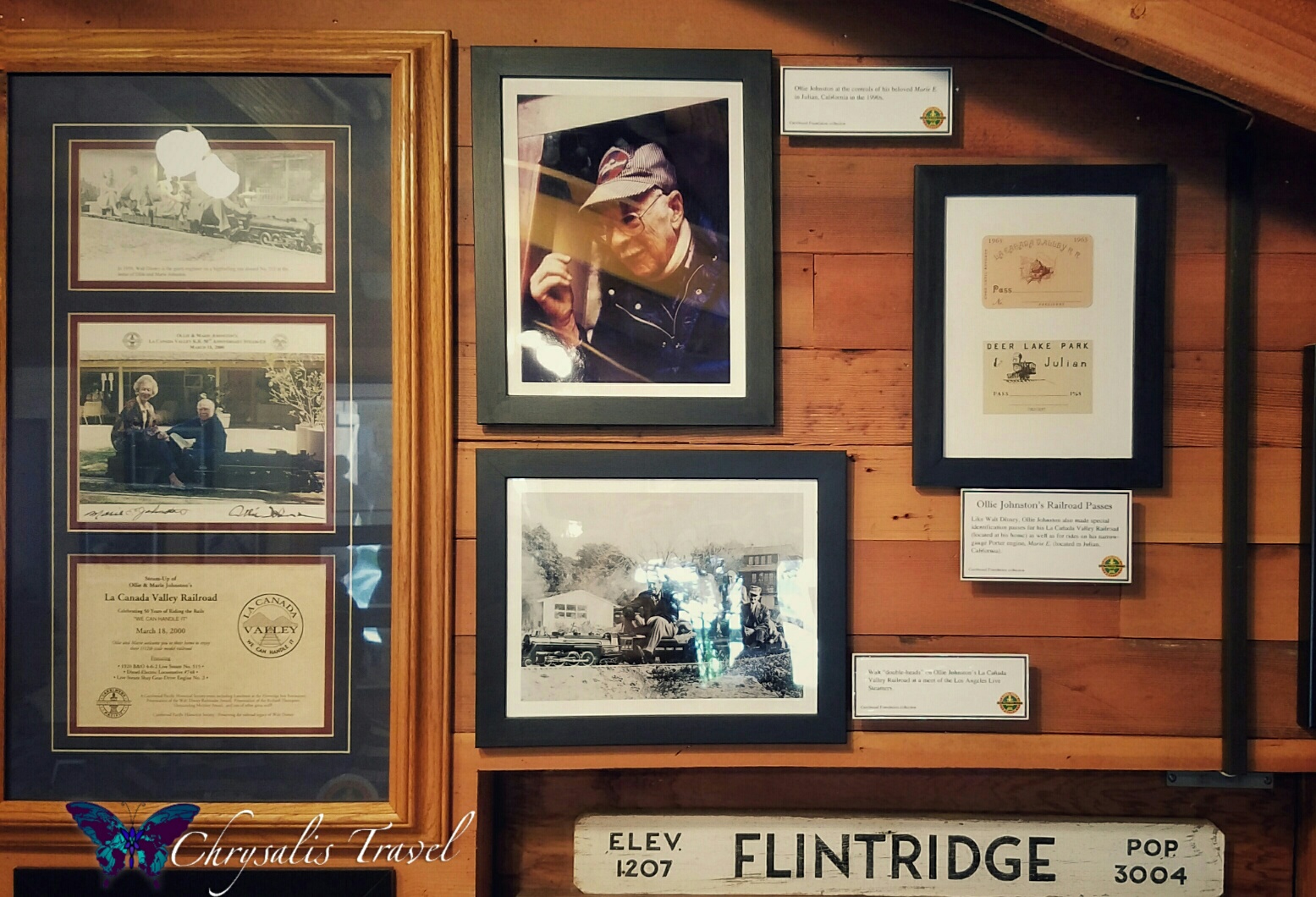 Ward Kimball loved trains and Jazz. This wall features his classic round glasses and photographs.