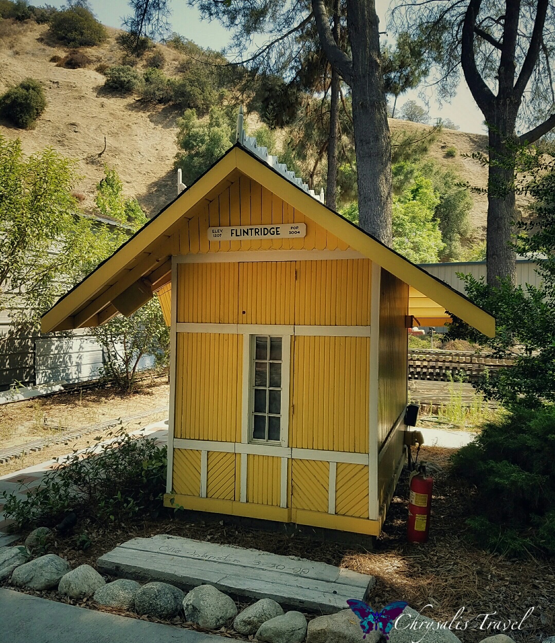 Roger Broggie, Walt’s first Imagineer, also loved trains. He helped build this 1/8th scale model of the Lilly Belle steam engine. Broggie is also co-Founder of the Carolwood Foundation that maintains Walt’s Barn.Ollie Johnston’s train station, relocated from his home. Ollie signed the concrete block below.