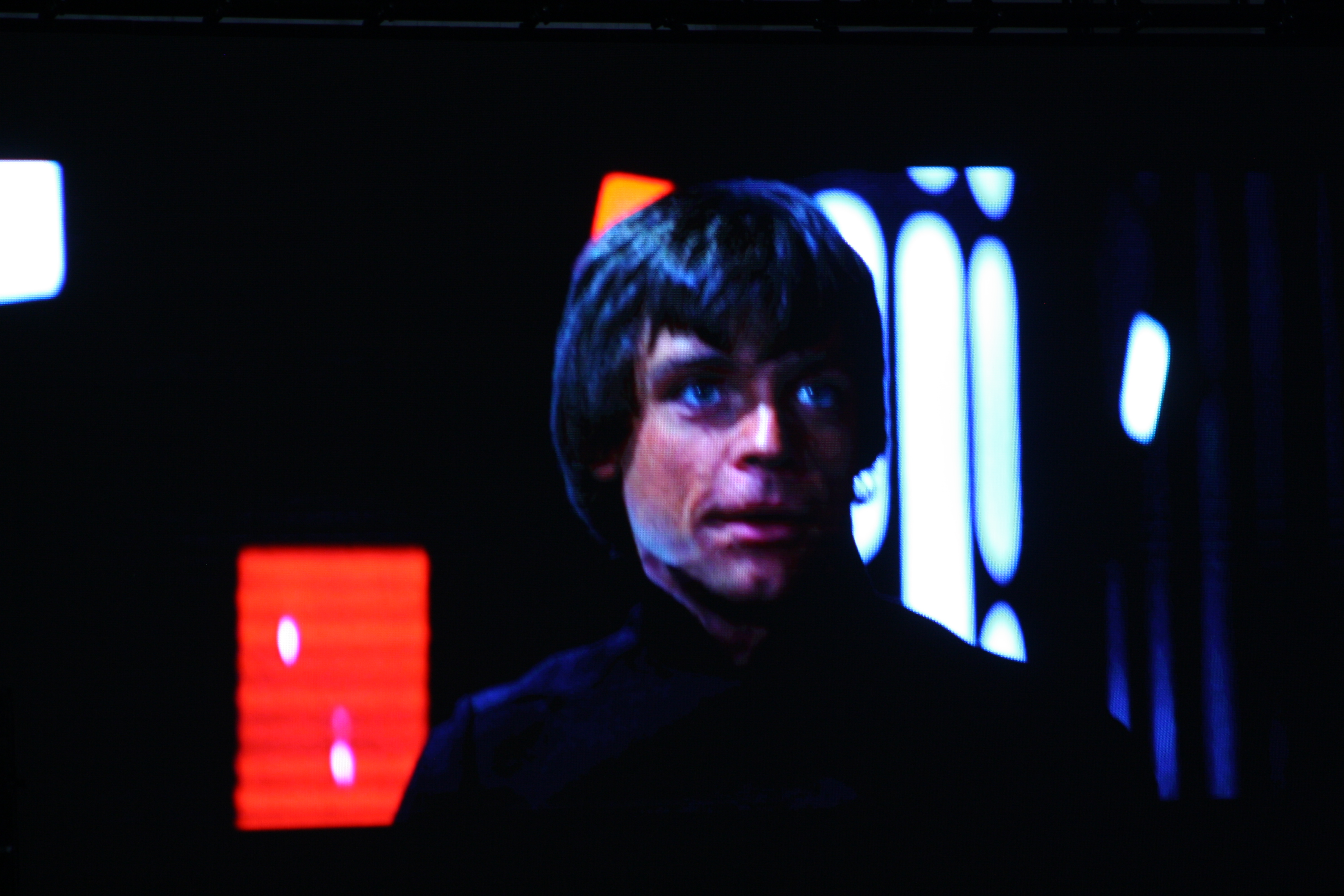 Hamill thanked the packed convention room and started off by paying tribute to Kenny Baker the man who played R2-D2. It was Baker who he first started shooting with on A New Hope and Baker would forever keep him and the rest of the crew laughing while shooting in the heat of Tunisia. Hamill wanted to acknowledge Baker and thank him for what he did. This brought a roar of applause from the packed room.