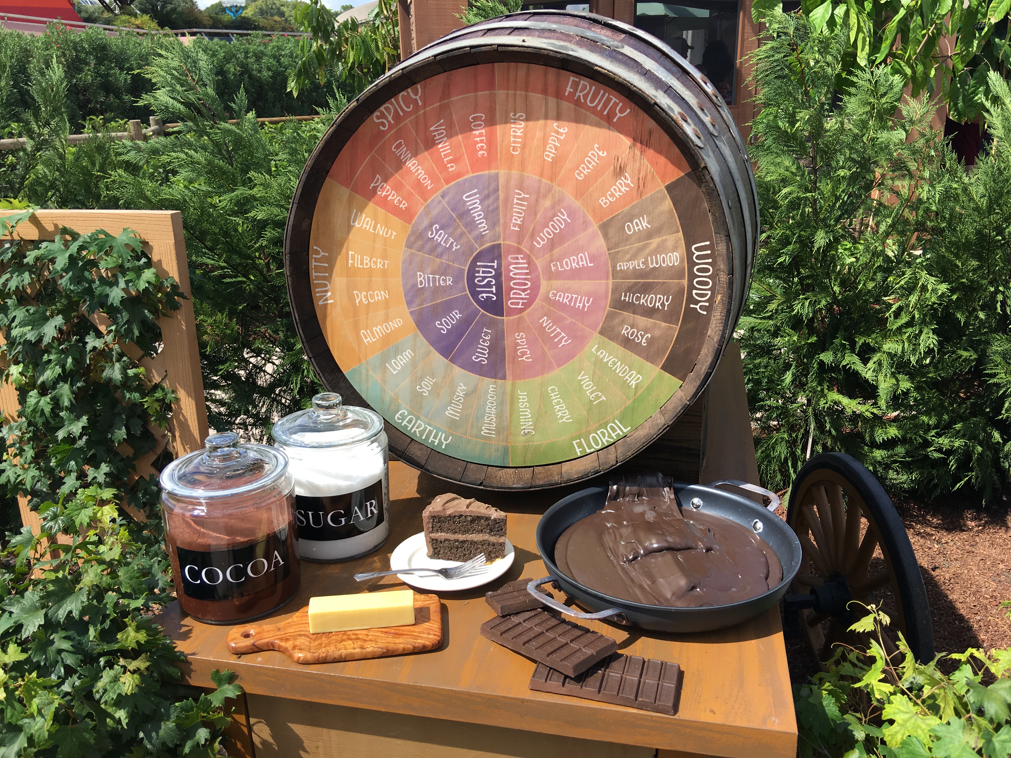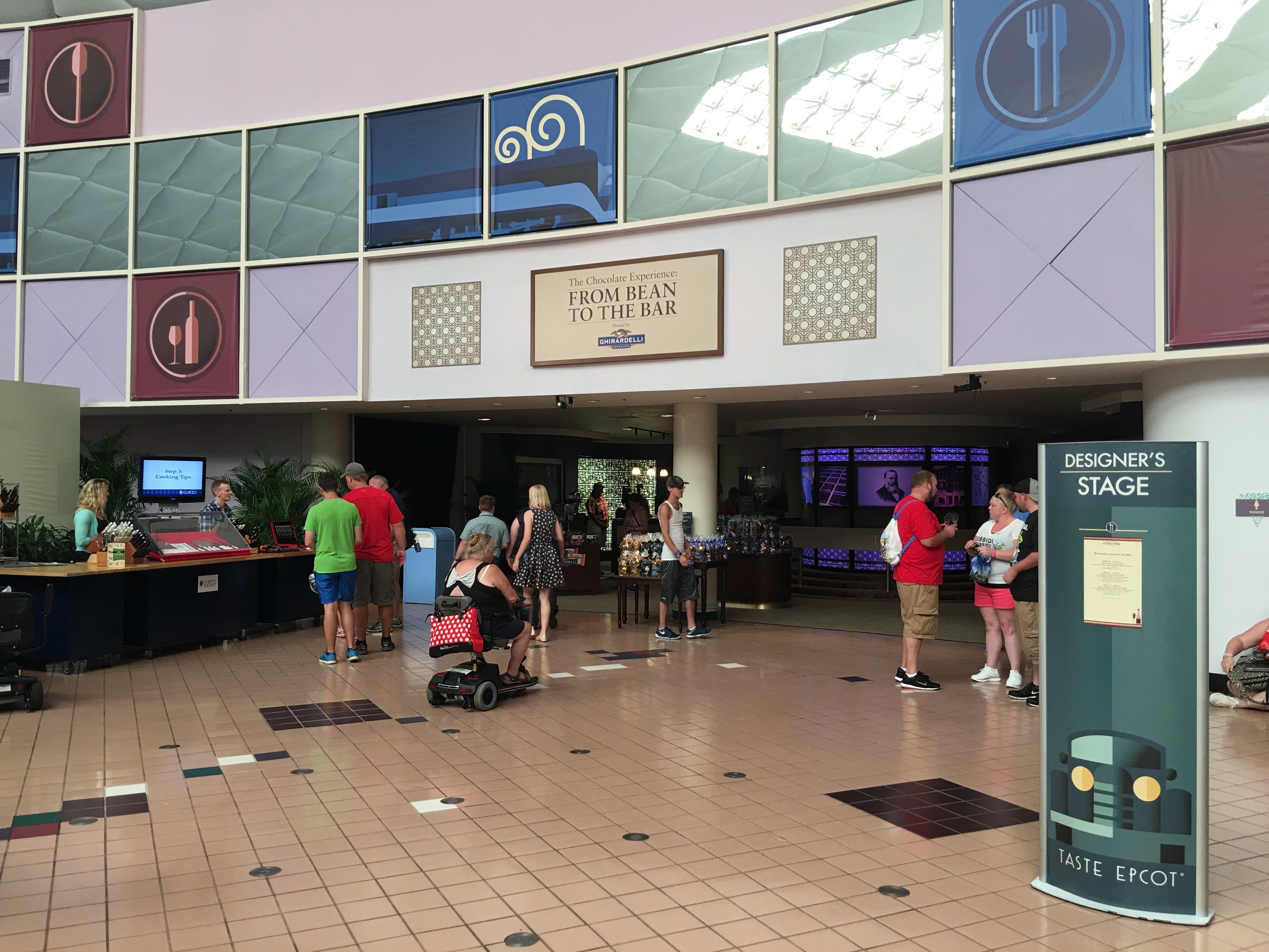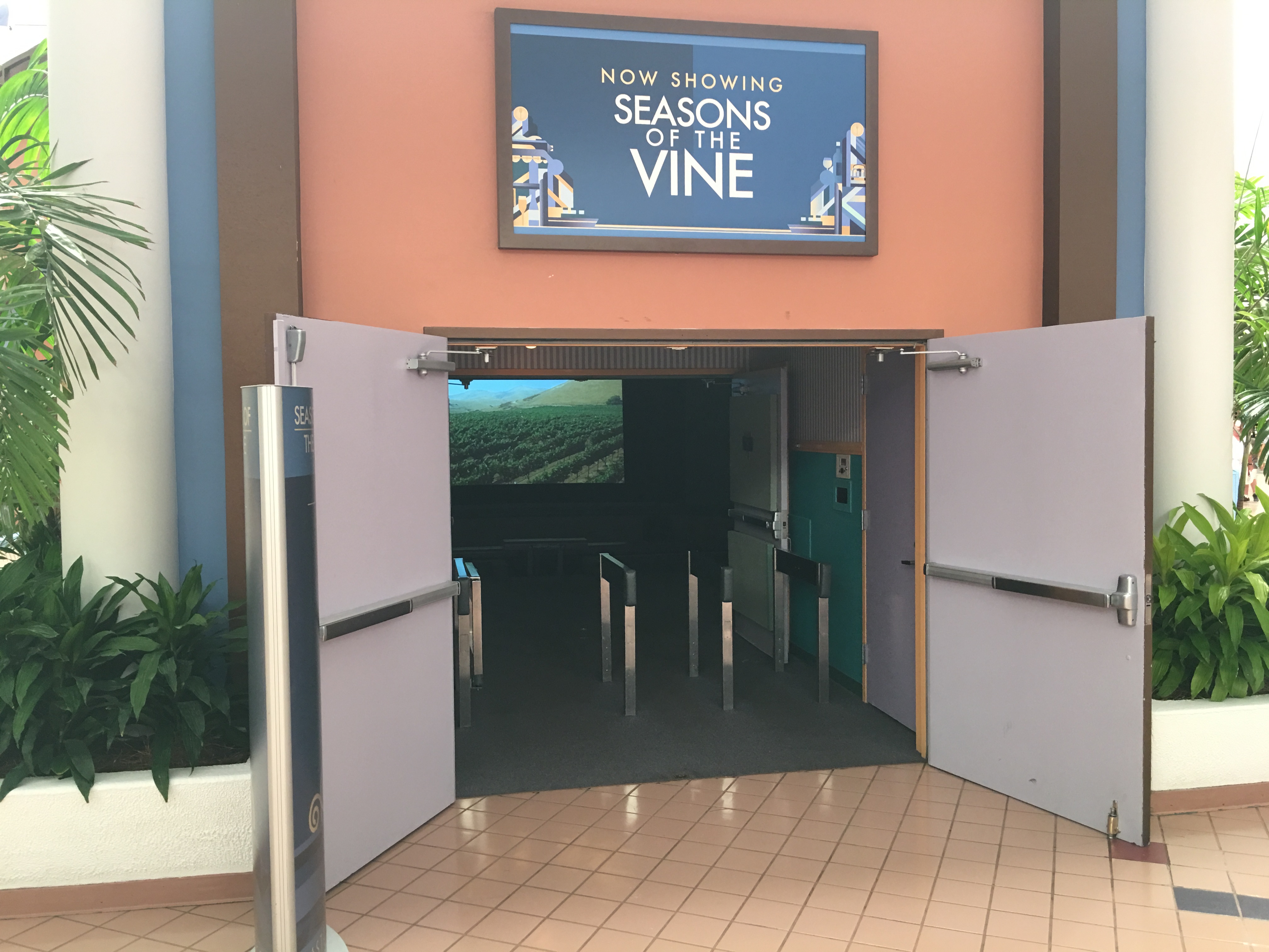 This is home to guest favorite The Chocolate Experience: From Bean To The Bar hosted by Ghirardelli Chocolate Company with free samples and chocolate displays by pastry chefs from around Walt Disney World. Just across the walkway from that is the return of the Disney's California Adventure 1.0 film about how the grapes are made for wine in Seasons of the Vine.