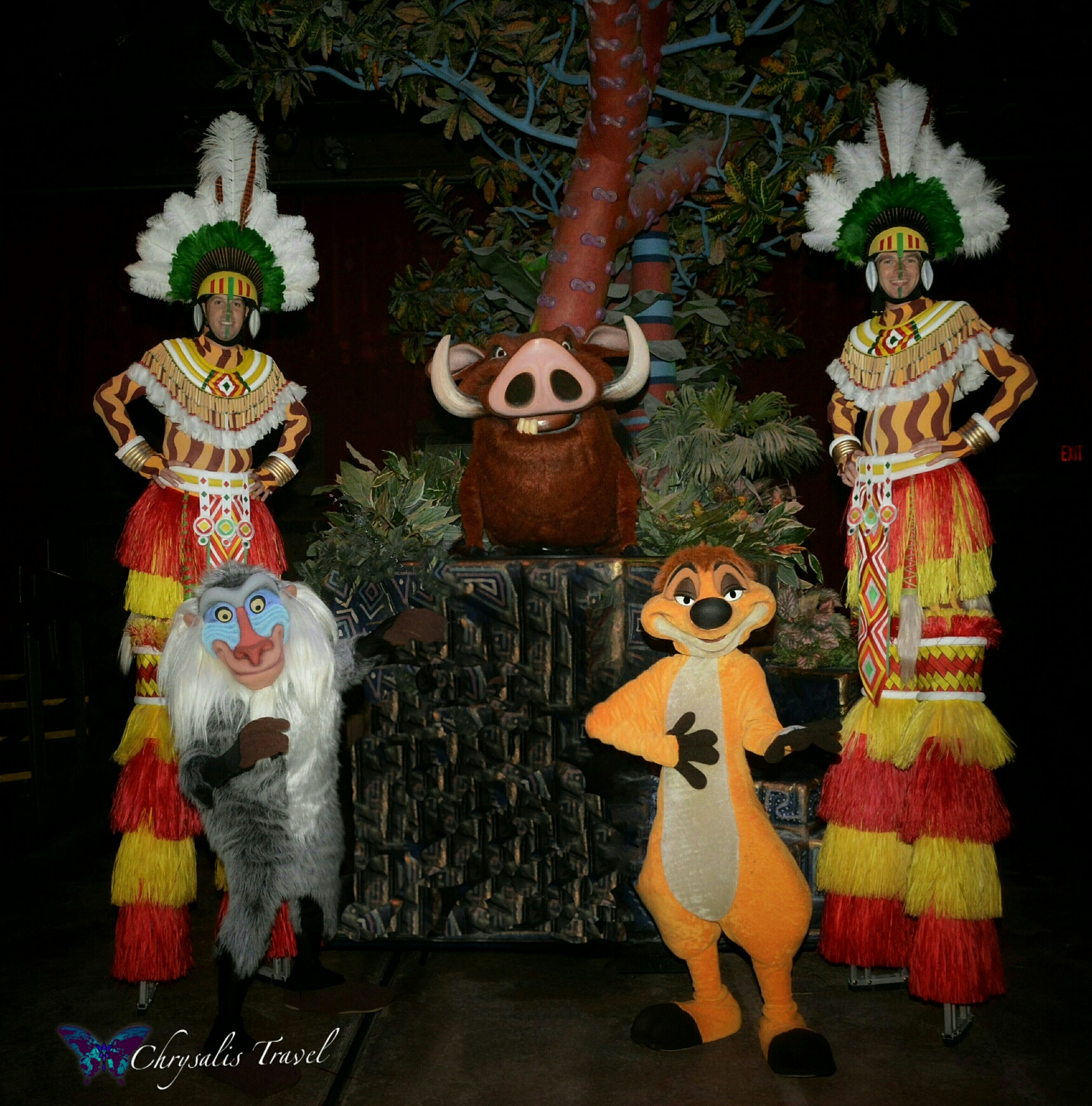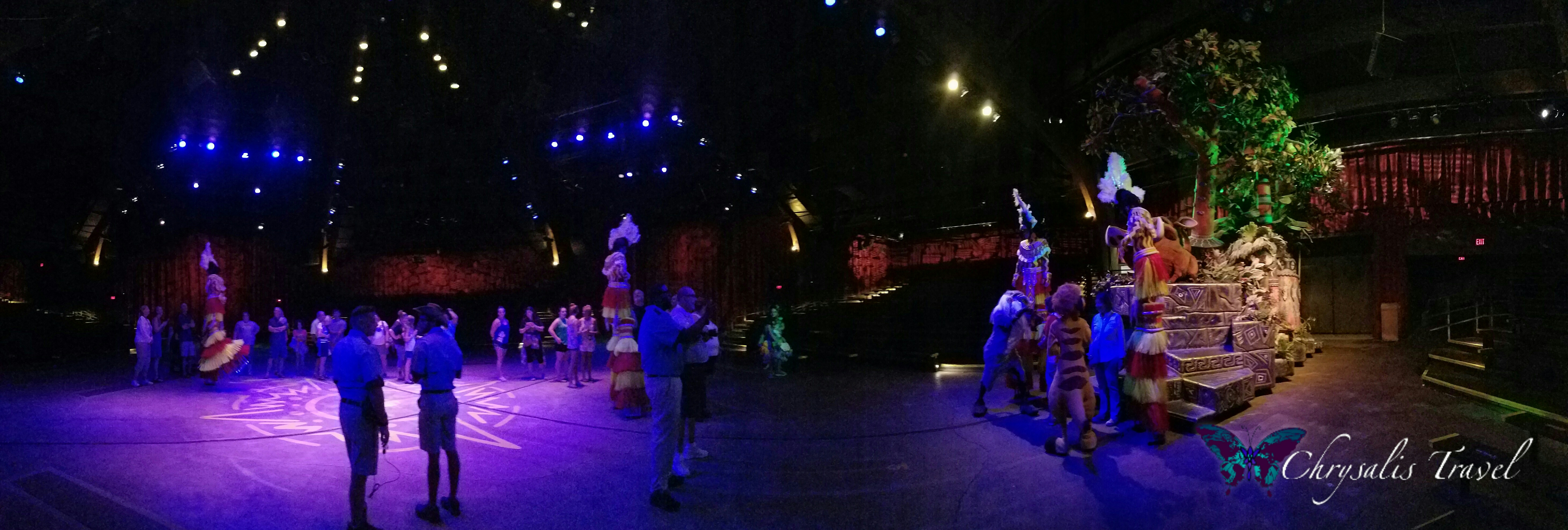 DVC members know the Disney parks and resorts, and it takes a bit to impress them. For the Safari Spectacular, Disney Vacation Club created unique opportunities for Character for meet and greets. Although the last Lion King show was at 6 pm, the Festival of the Lion King theater was open for members. We were charmed by four stilt walkers before meeting Rafiki, Timon, and Pumbaa.Carl Fredricksen was a star, as he joined Dug and Russell at the Disney-Pixar UP character station. Hugs were available from Baloo and King Louie (Jungle Book), Chip ‘n Dale Rescue Rangers, Launchpad McQuack (Duck Tales), Flick and Princess Atta (A Bug’s Life), and Mickey and Minnie of course!