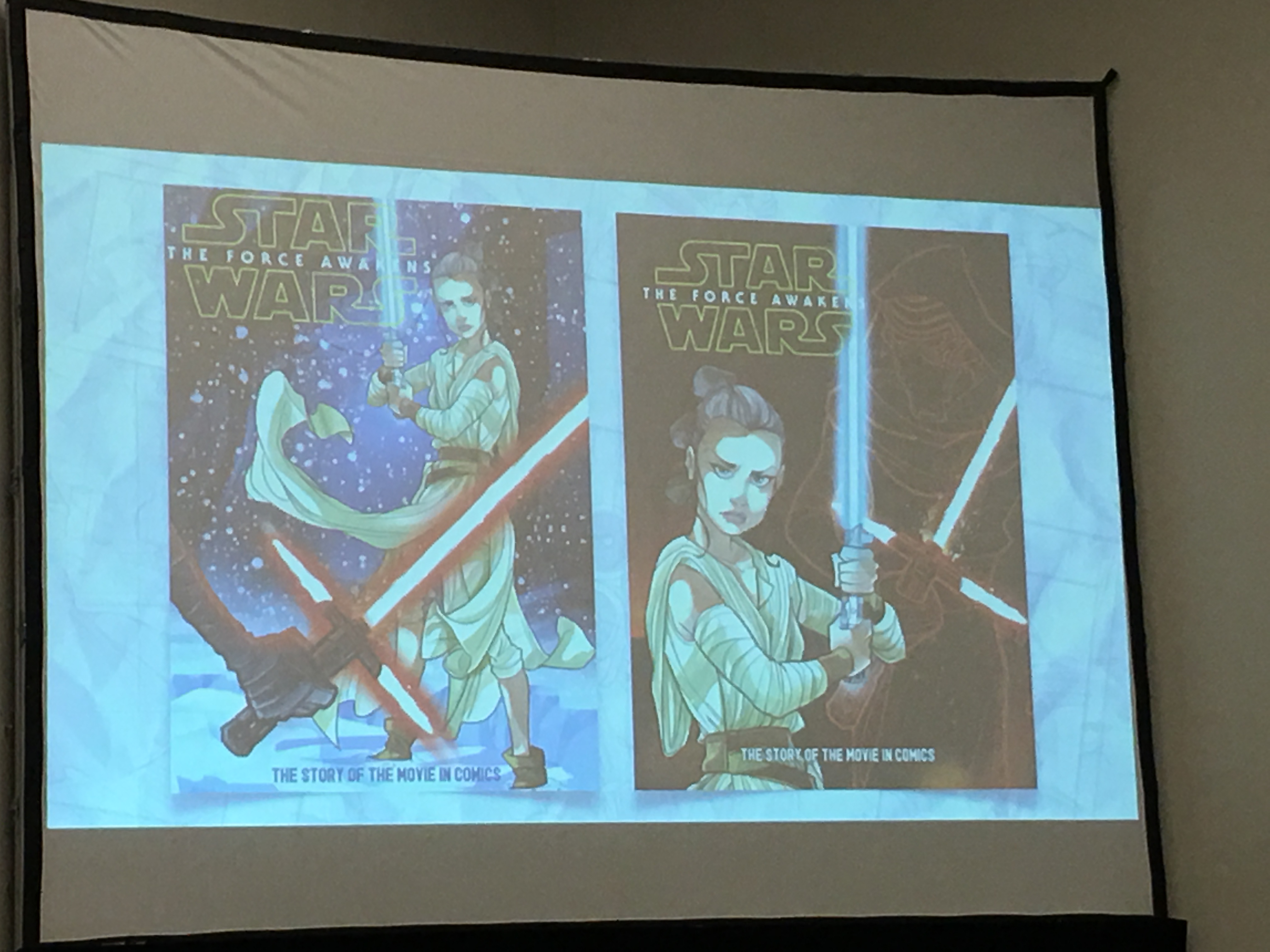 The Dynamic World of Disney Comics, while covering the whole line of 'young readers' comics, spent a good amount of time talking about the translation of Star Wars to comics. One of the highlights was seeing the Star Wars The Original Trilogy new book that condenses Episodes 4-6 into a bound hardcover comic.