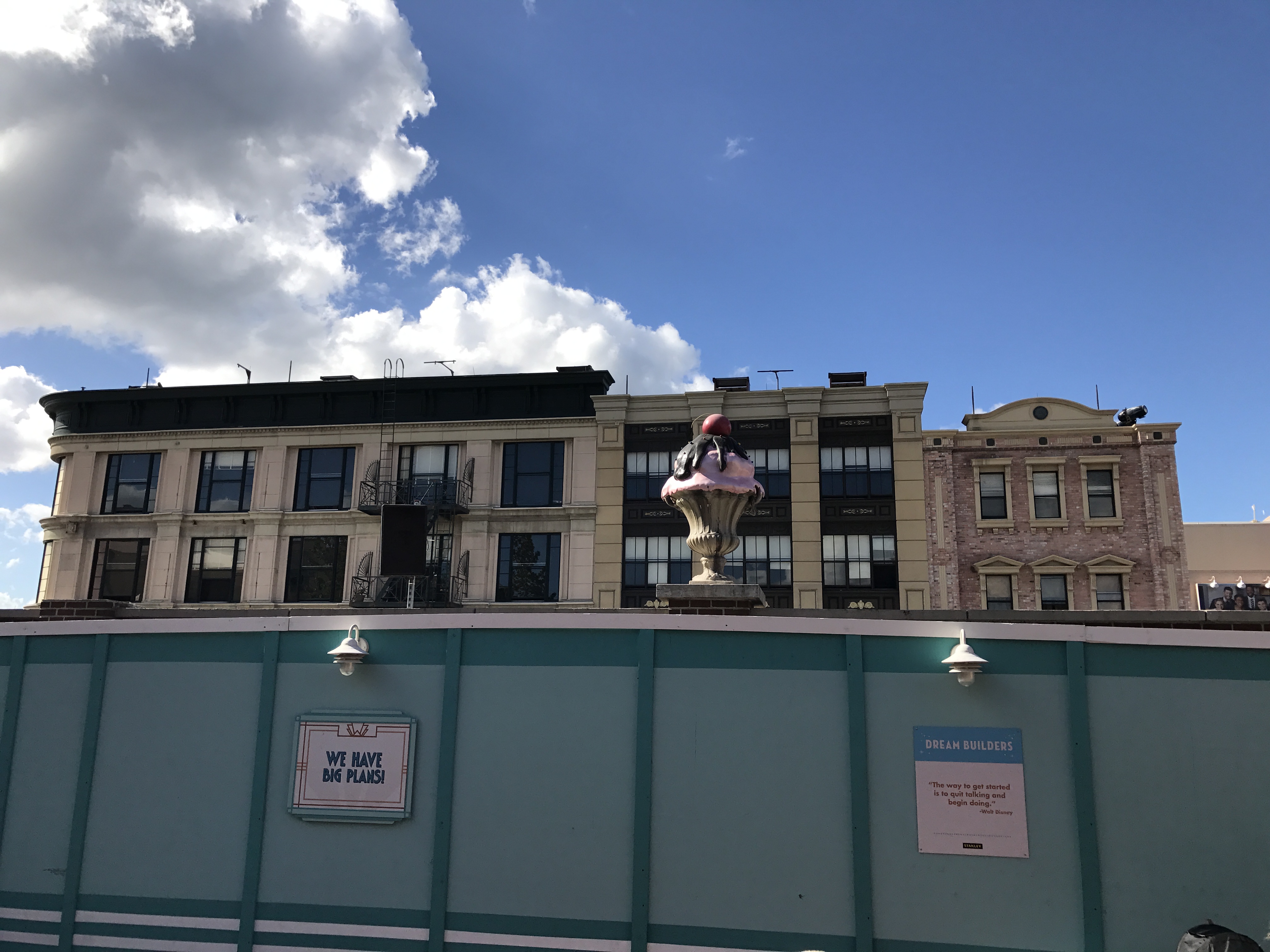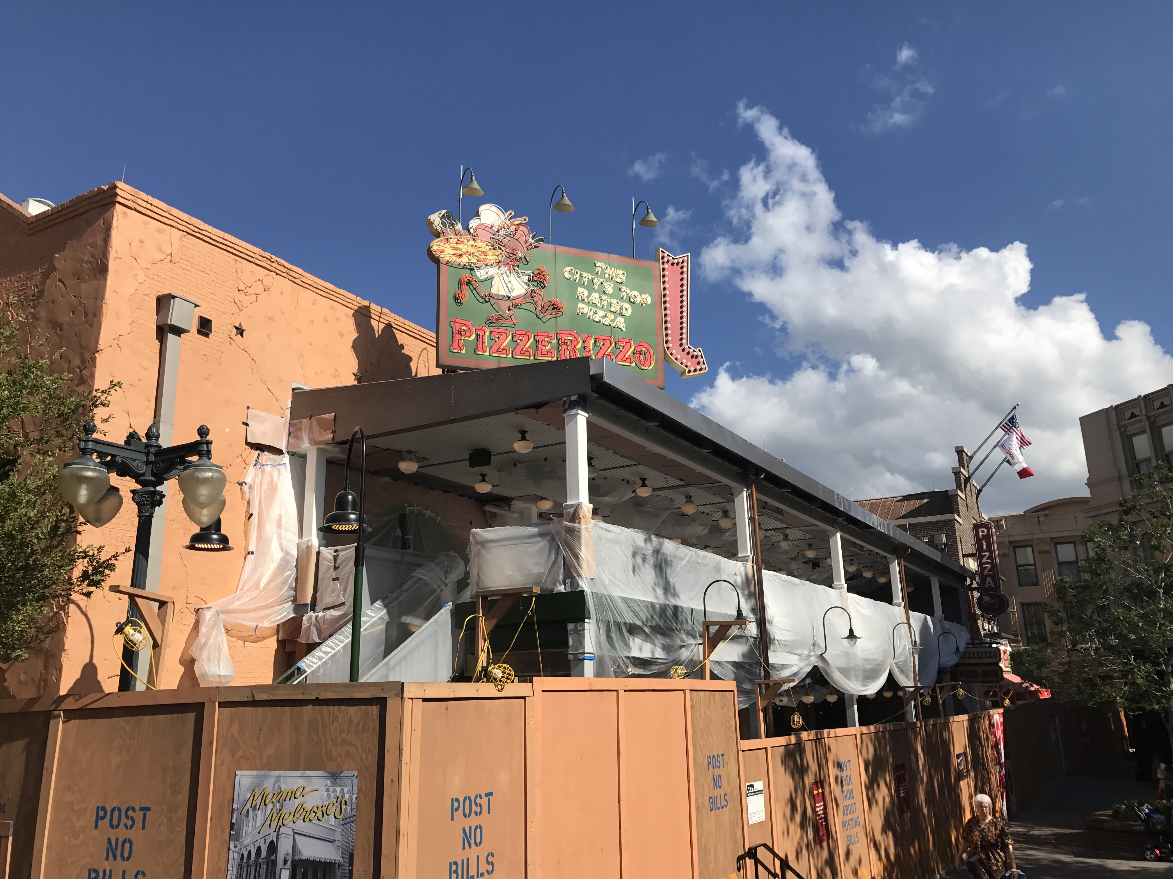 As you can see what was once a busy area of the park is now not only blocked off, it is also flattened. But with the demolition also comes new life in the form of the Muppet's themed PizzeRizzo, taking over the former Pizza Plant location this quick service restaurant will help add to the Muppet Courtyard area of the park.