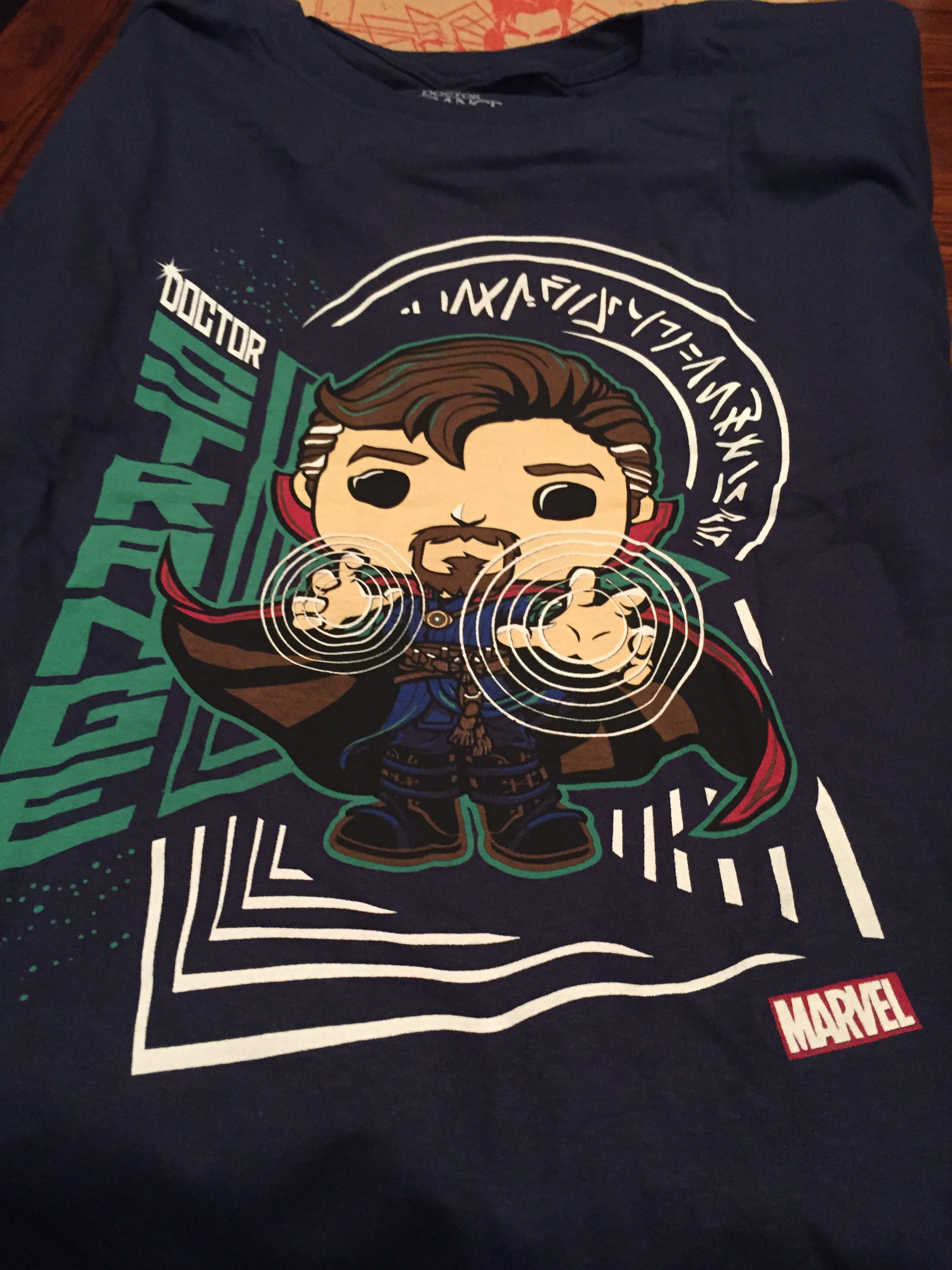 The t-shirt features the cutest Doctor Strange in the world! When I see the film this Friday, this is what I will be wearing.