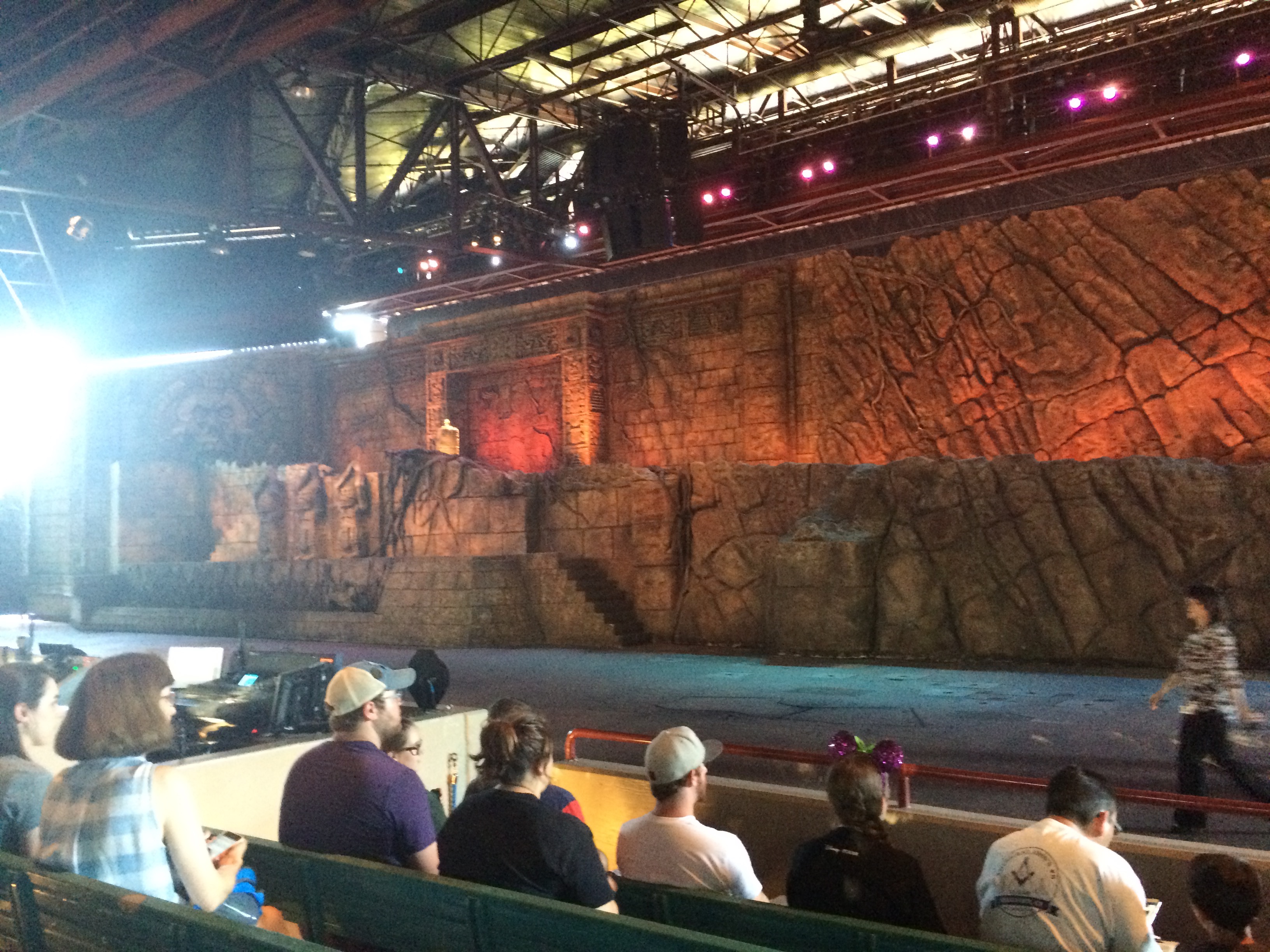 Anyway, I left the line early and headed on over to Indy to secure a prime spot. I managed to get one in the fourth row, and I made the decision to try to be a volunteer in the show. Sure enough, when the cast member came around looking for volunteers, I literally jumped out of my seat for the chance, and she chose me!