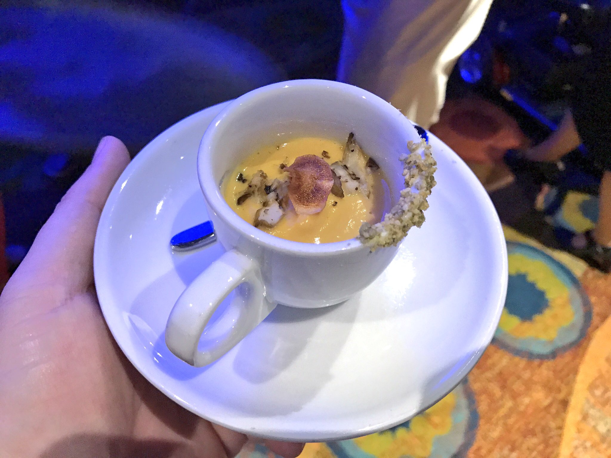 Starting at The Wave in the Contemporary Resort, guests check-in and have a seat before starting the evening off with one of the signature drinks of the event, the Bay Lake Sunset, and a bit of amazing Butternut Squash Soup. As we enjoy our drink and appetizer, we are advised that at each of the locations we will have approximately 30 minutes, and 10 minutes before we depart, we will get a restroom call for anyone that needs to take a break before the Monorail ride to the next stop.