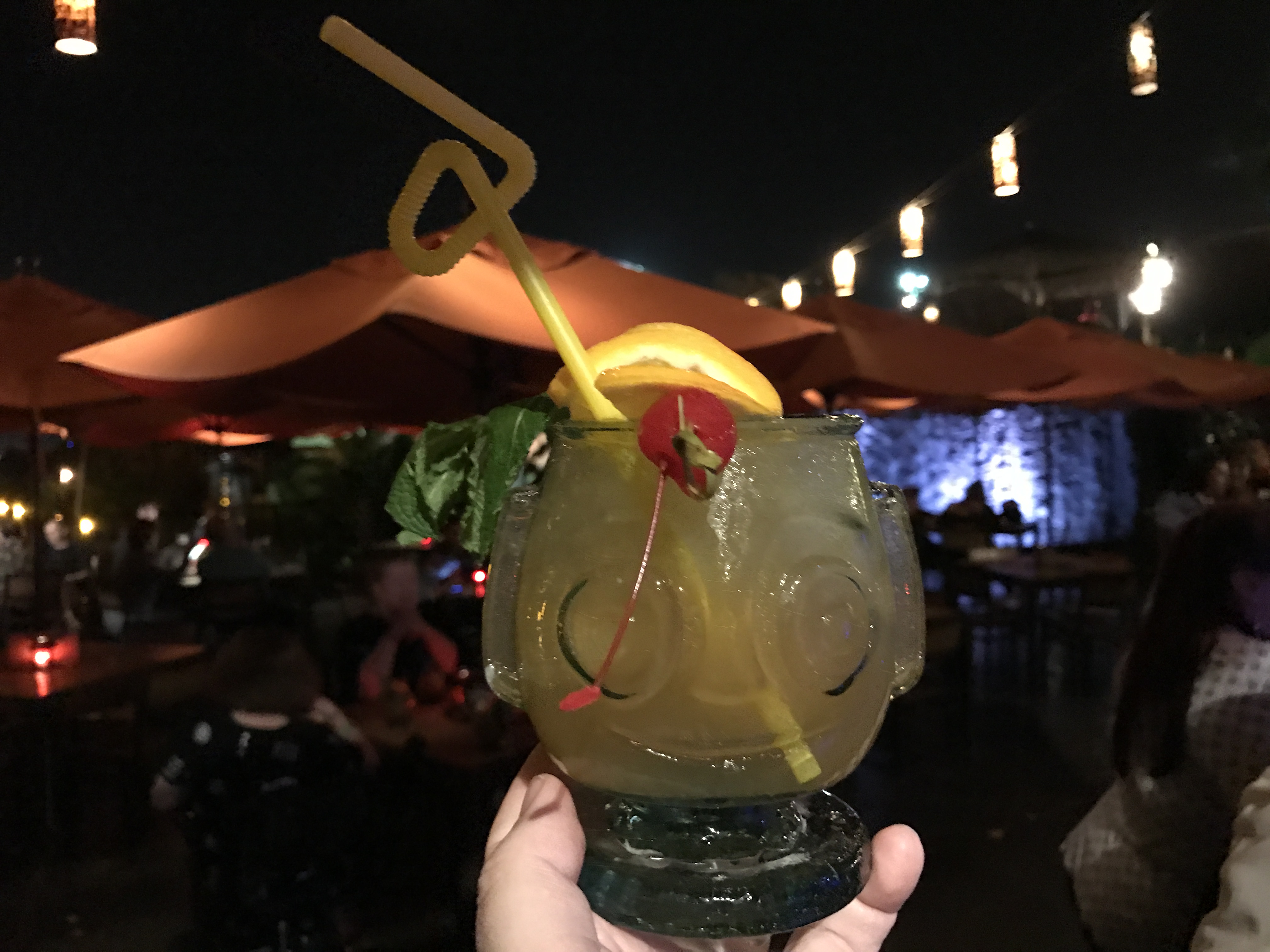 At the Poly, we head down to the Trader Sam's Tiki Terrace for a beautiful view of Seven Seas Lagoon along with a HippopopotaMai-Tie, Golden Beet Salad, and Seared Tuna to start.