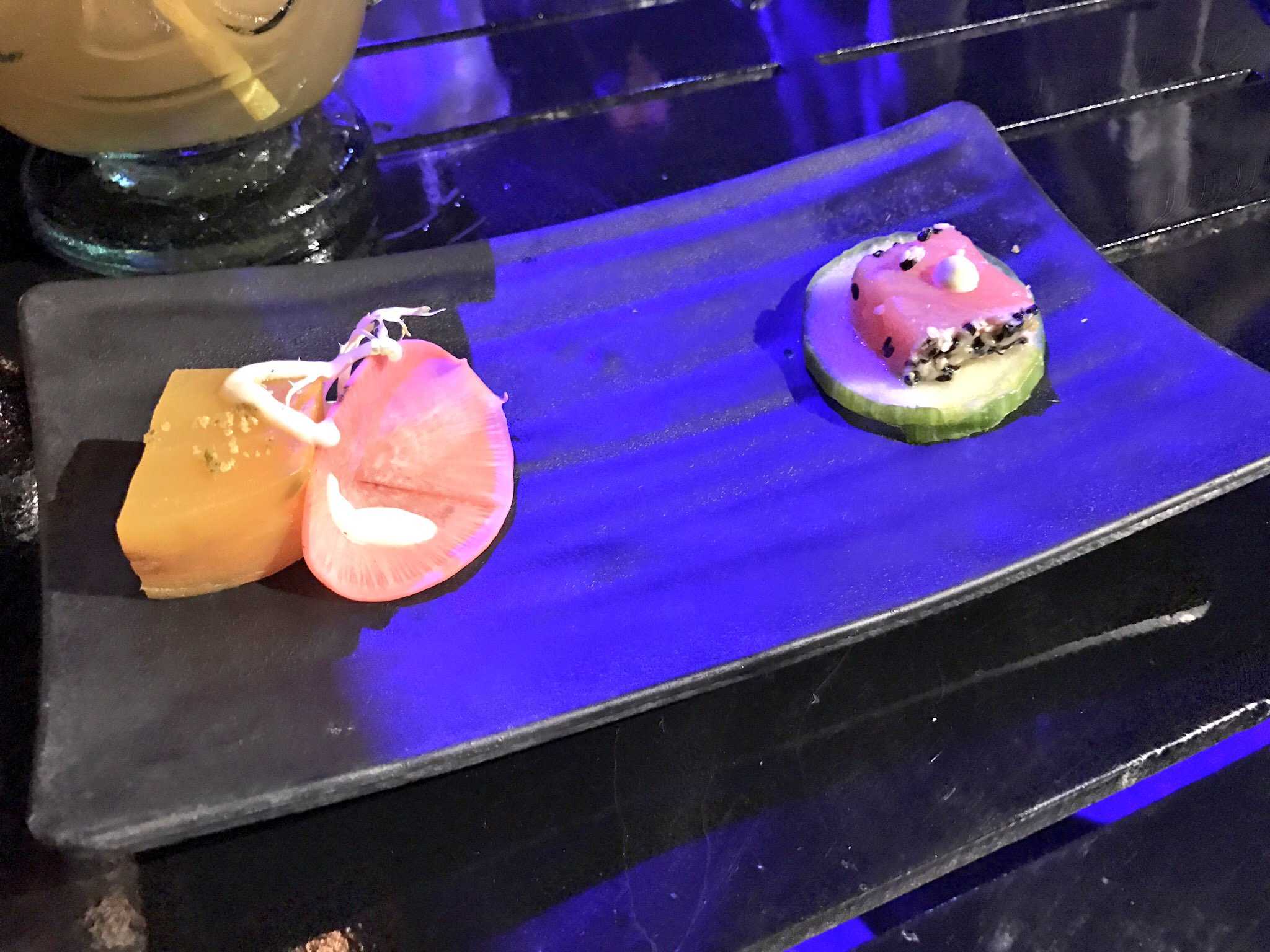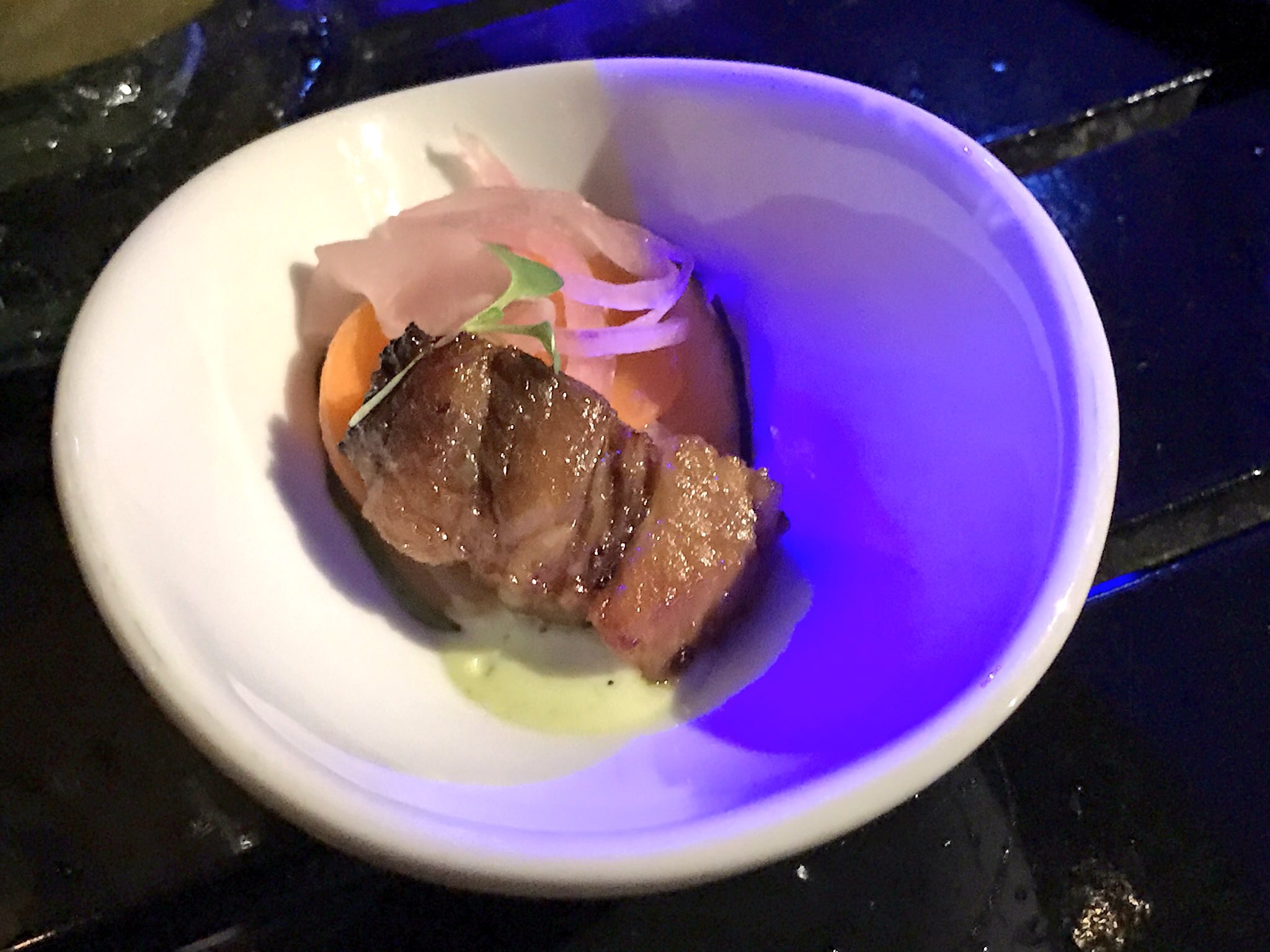 A few minutes later, our servers came around to give us Chili Dusted Pork Belly of Pickled Vegetables.