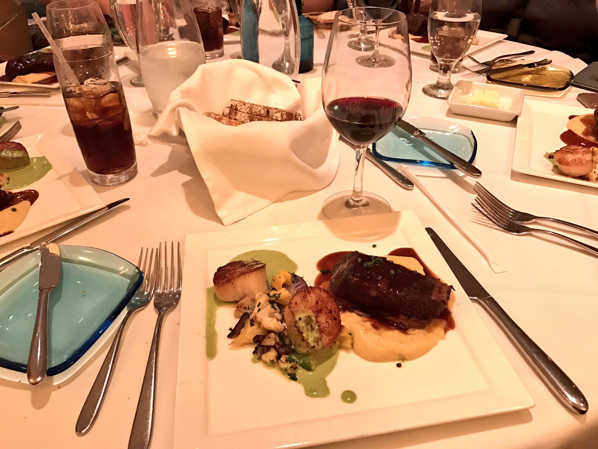 The main course was the Surf and Turf plate consisting of scallops and short rib that just melted in your mouth. There were also options for two fine wines to enjoy with your meal.