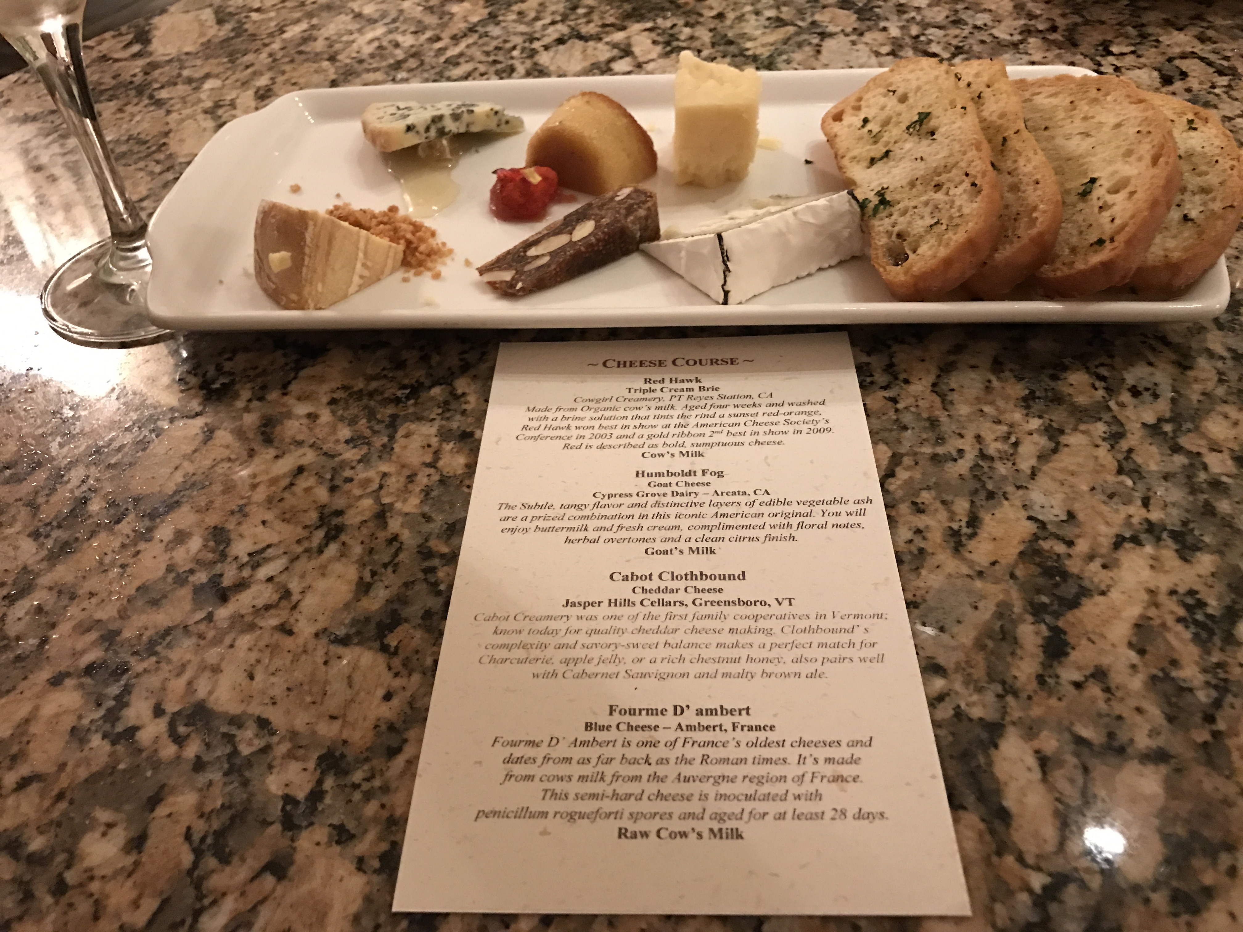 After the main course came a visit to The Garden View Lounge for a glass of the FairyTale sparkling wine and a unique cheese plate that had many new flavors.