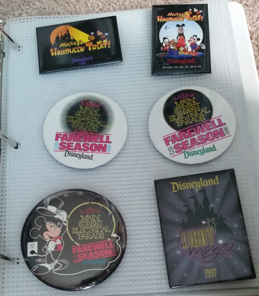 [gallery td_select_gallery_slide="slide" ids="199023,199022,199021,199020,199019" orderby="rand"]And finally, a page from our button book showing our light up button, the standard white button and a souvenir for the Electrical Parade's replacement which unfortunately did not last 24 years. There are also a couple of buttons for Mickey's Halloween Treat. Maybe we'll cover that in another post.