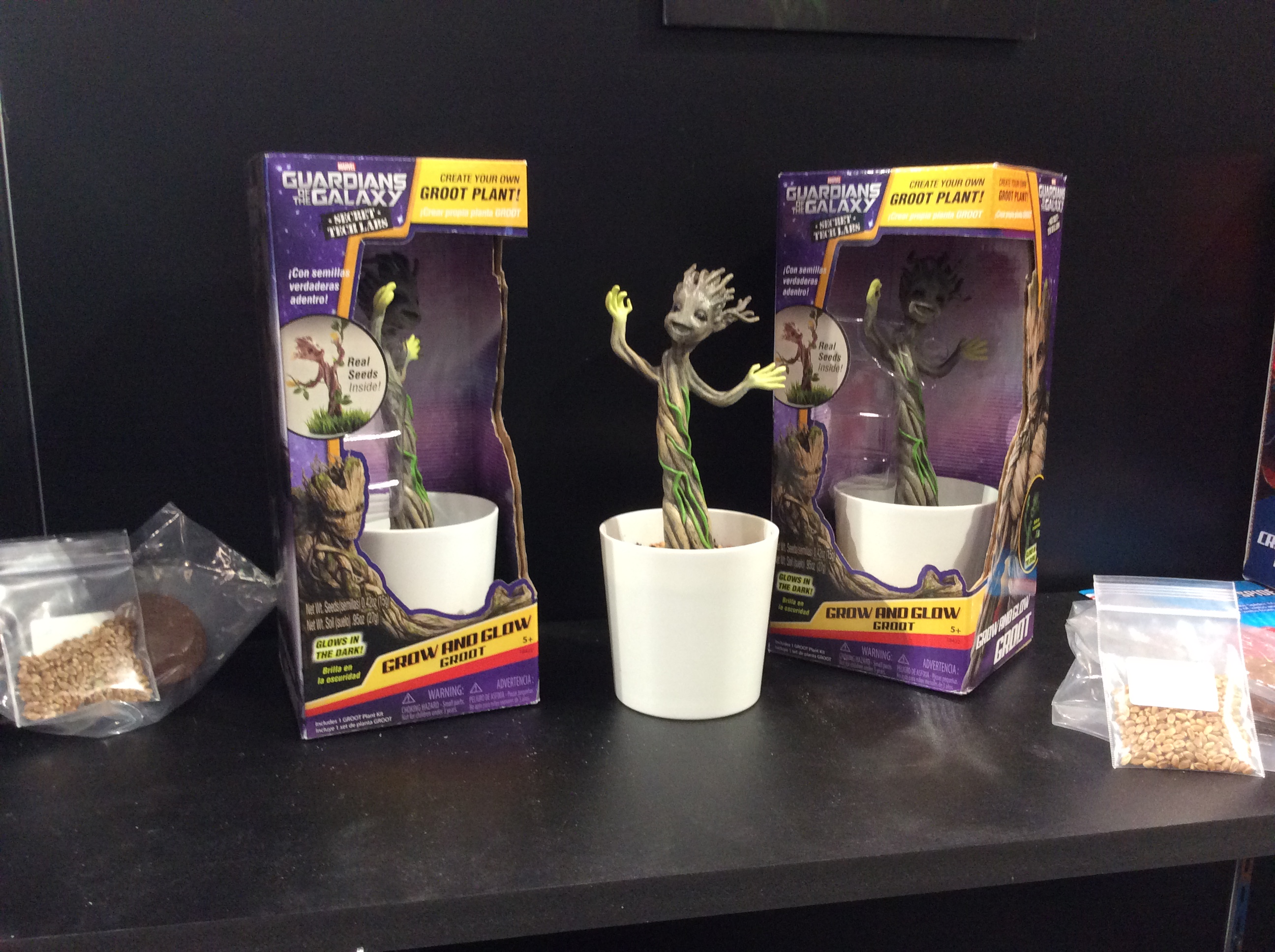"I am Groot!" That's what Groot would say if he was trying to tell you how cool the Grow and Glow Groot is. This product is returning to store shelves and was originally released in 2015 after the first Guardians of the Galaxy became a worldwide success. These wheat grass seeds grow rapidly around Groot, nearly eclipsing him after just three days, and the battery operated figure glows from within.