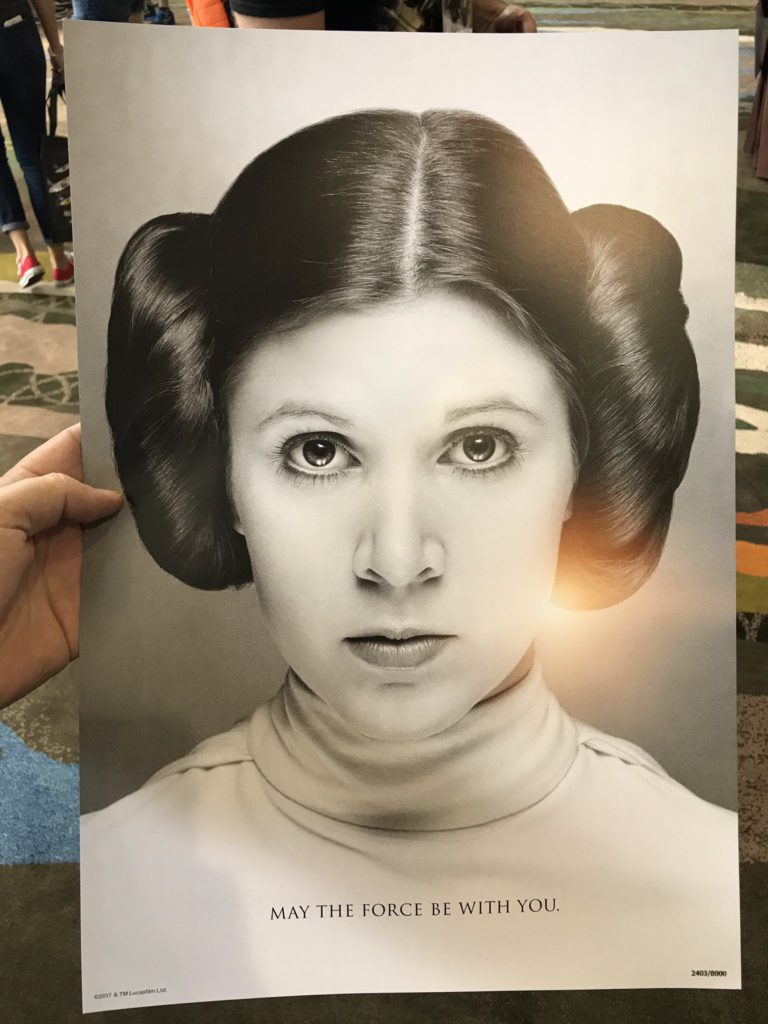 To end the Carrie Fisher tribute, a curtain parted on the side of the stage to reveal the Orlando Philharmonic Orchestra, conducted by legendary film composer John Williams. They began their performance with "Leia's Theme," giving Fisher a fitting farewell. To end the presentation, they rose audience's spirits back up with the "Star Wars Theme" and "The Imperial March." As a parting gift, attendees were given a very fitting, limited and numbered lithograph commemorating the life of Carrie Fisher.