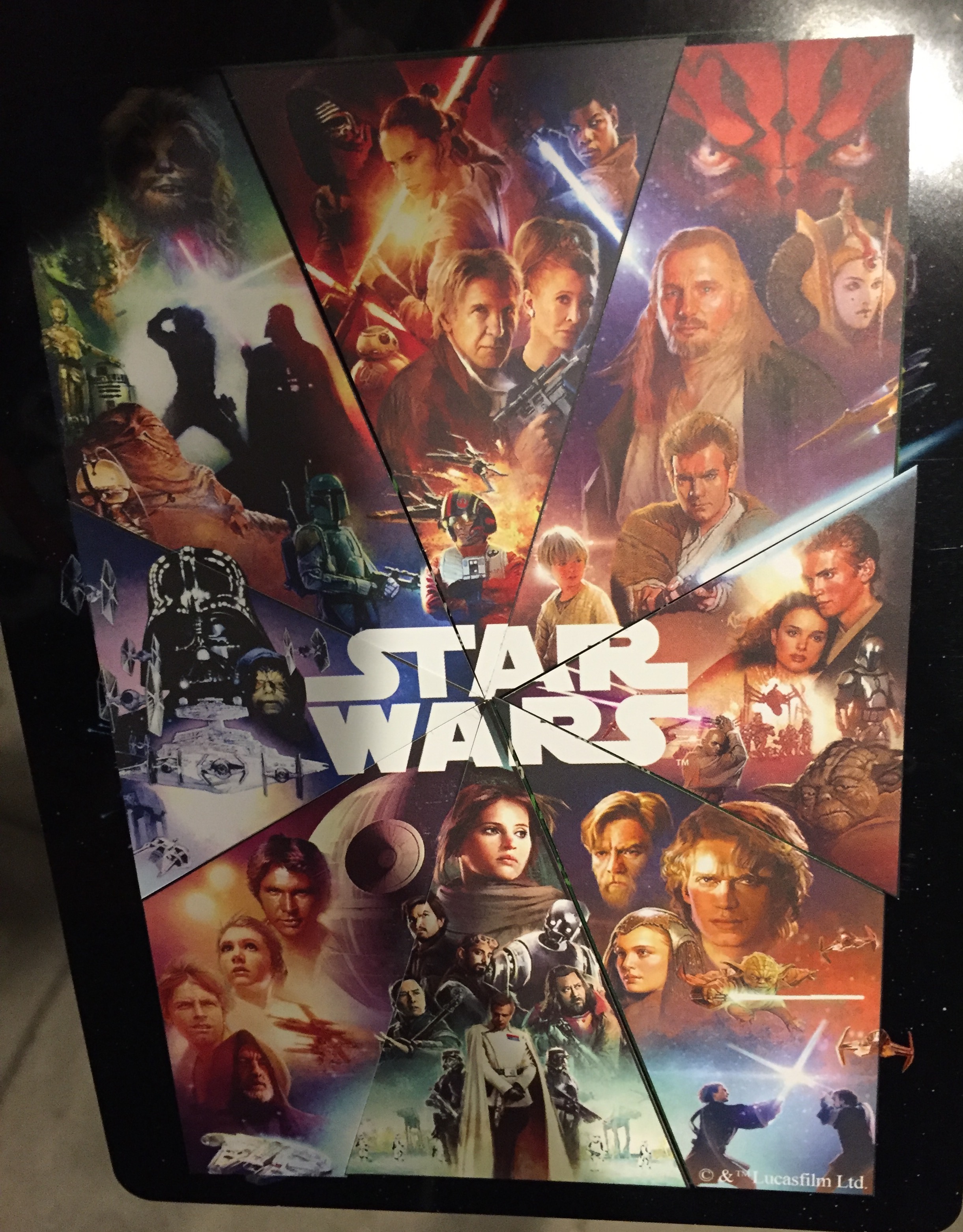 Upon entering the park, guests were given a substantially sized lanyard, featuring one of eight slices of the event's image completed. To finish the puzzle, guests would need to visit the seven photo opportunities set up throughout the park. Thankfully, they did not require you to take a picture at each one as this would have taken all night. The photo ops were Jabba the Hutt's Palace, Han Solo Frozen in Carbonite, Hoth Wampa Cave, Trash Compactor, Emperor's Throne Room, Rogue One, and Speeder Bike (the latter being a permanent photo op near Star Tours).
