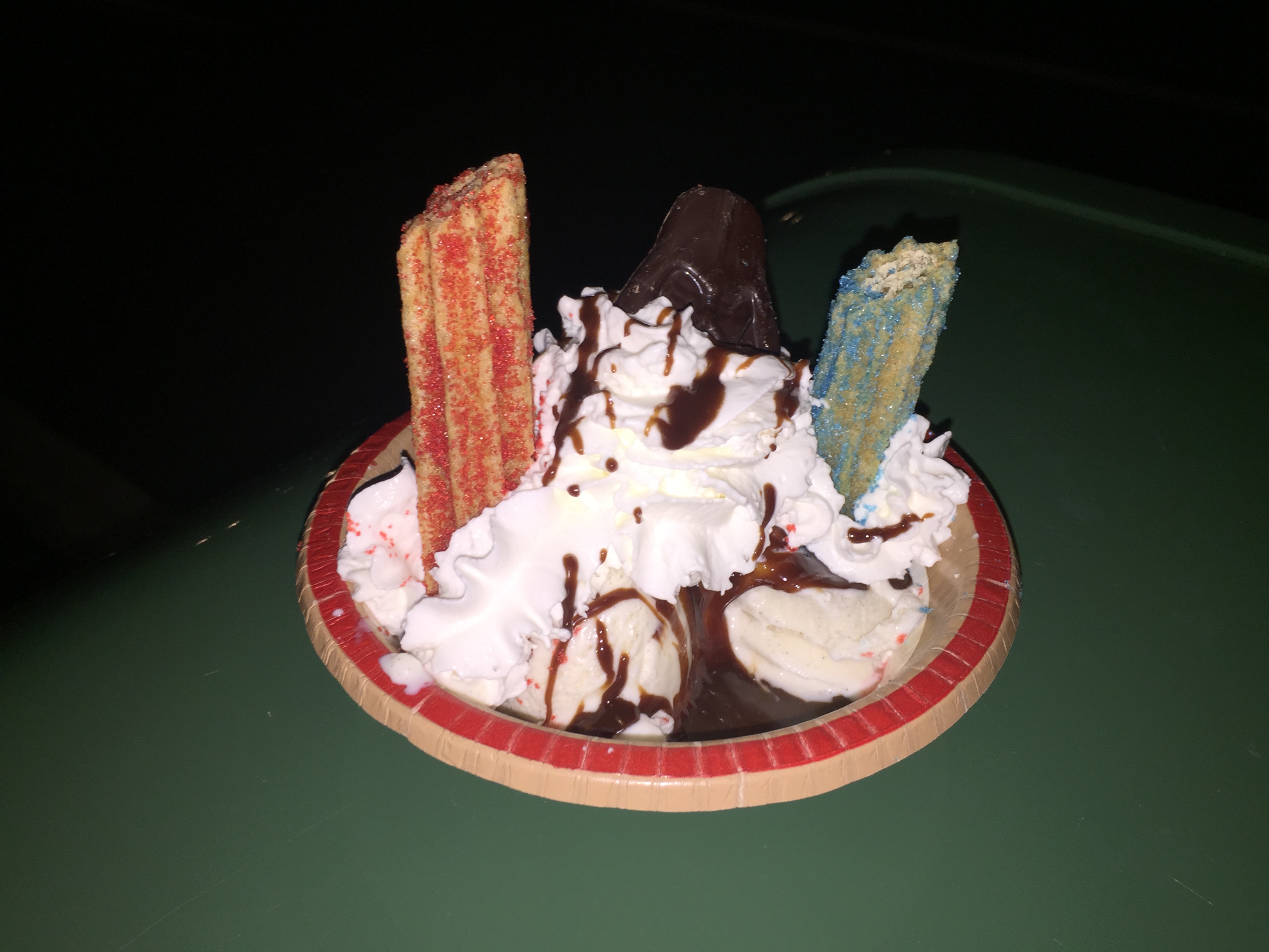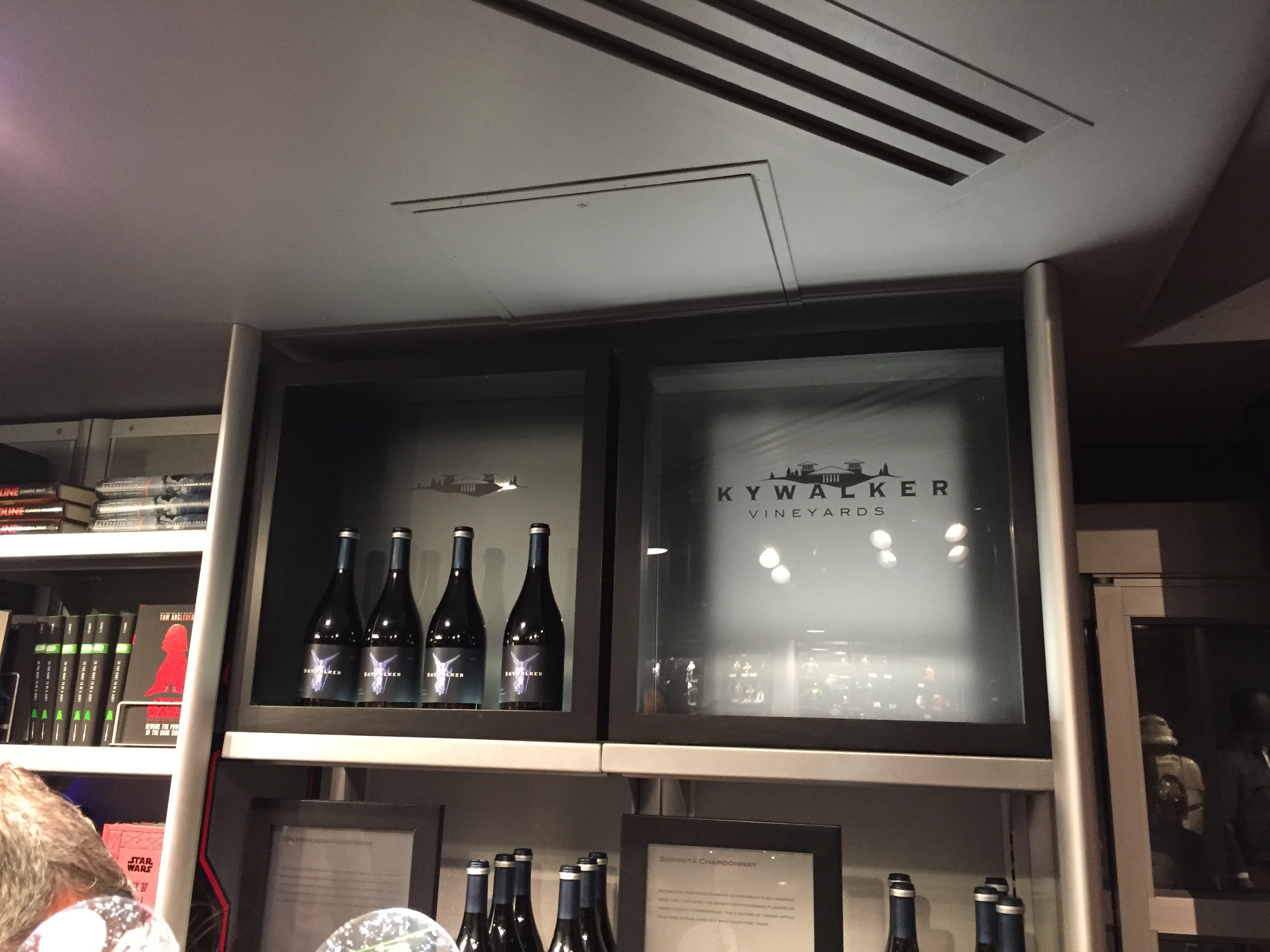 One of the most impressive elements of the event was the themed food. We tried the Light Saber Sundae, which featured half a red and blue churro on either side and a Darth Vader chocolate icon on top. The churros could also be purchased separately and came with a paper sleeve that looked like a hilt. Pop-up bars throughout the park featured themed cocktails and Skywalker Vinyards wines were available (guests could also purchase bottles to take home). It seemed like every dining location had some form of Star Wars themed food, including a charcuterie plate to pair with the wine.