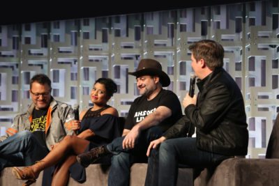 The third day of Star Wars Celebration kicked off with a 90-minute panel devoted to the hit Disney XD series, Star Wars Rebels. Writer/Creator Dave Filoni brought cast members to the stage in the biggest venue of the convention center for a presentation that would be streamed all over the world for fans of the series. The talent present included Freddy Prince Jr. (Kanan), Tiya Sircar (Sabine), Vanessa Marshall (Hera), Steve Blum (Zeb) and Taylor Gray (Ezra).