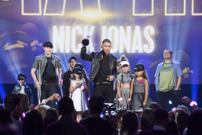 Next, Jack Black (plugging Sony's remake of Jumanji) presented his friend, Nick Jonas, with the RDMA Hero Award. Honored for his work in creating awareness for Diabetes and his fundraising efforts to help scientists research ways to improve the lives of those affected. He was joined on the stage by a group of kids diagnosed with Type 1 Diabetes, who modeled his Drop Spot hats. You can get one yourself and support this cause here.