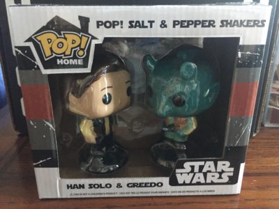 The first item out of the box is a Pop! Home item, salt & pepper shakers themed to Han Solo and Greedo. Neither of them have their weapons drawn yet, so you don't have to fight over who shot first. But it's up to you to decide which will season your dish first!