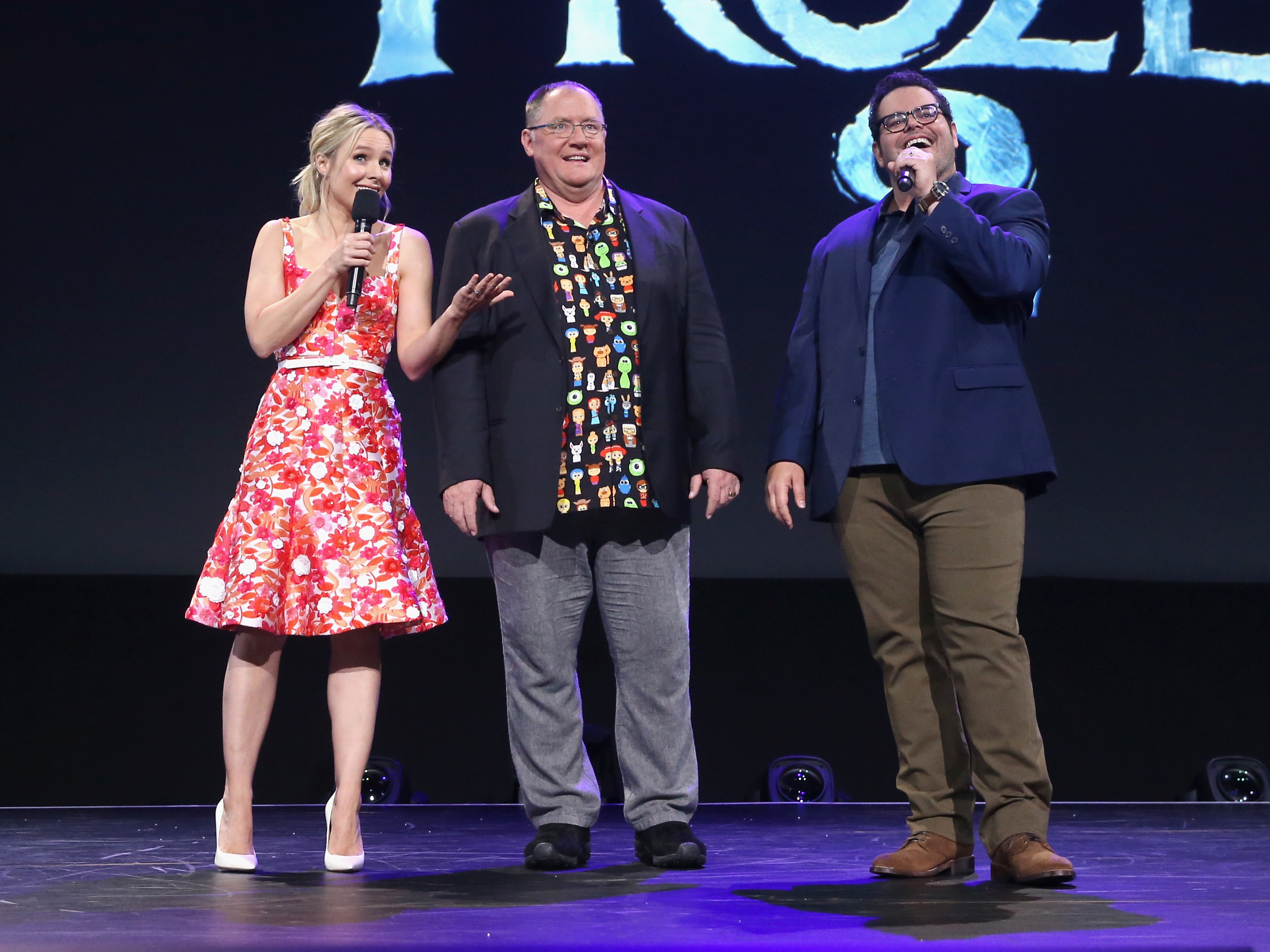 Kristen Bell teased that she would be showing one of the short's new musical numbers, but the clip quickly glitched. That's when Josh Gad surprised everyone by taking the stage and live singing to the animation for a song called "That Time of Year." It was a catchy tune that lives up to the spirit of "In Summer" and had just as many funny moments. The songs in this short were written by Kate Anderson (sister of Kristen Anderson-Lopez) and Elyssa Samsel.