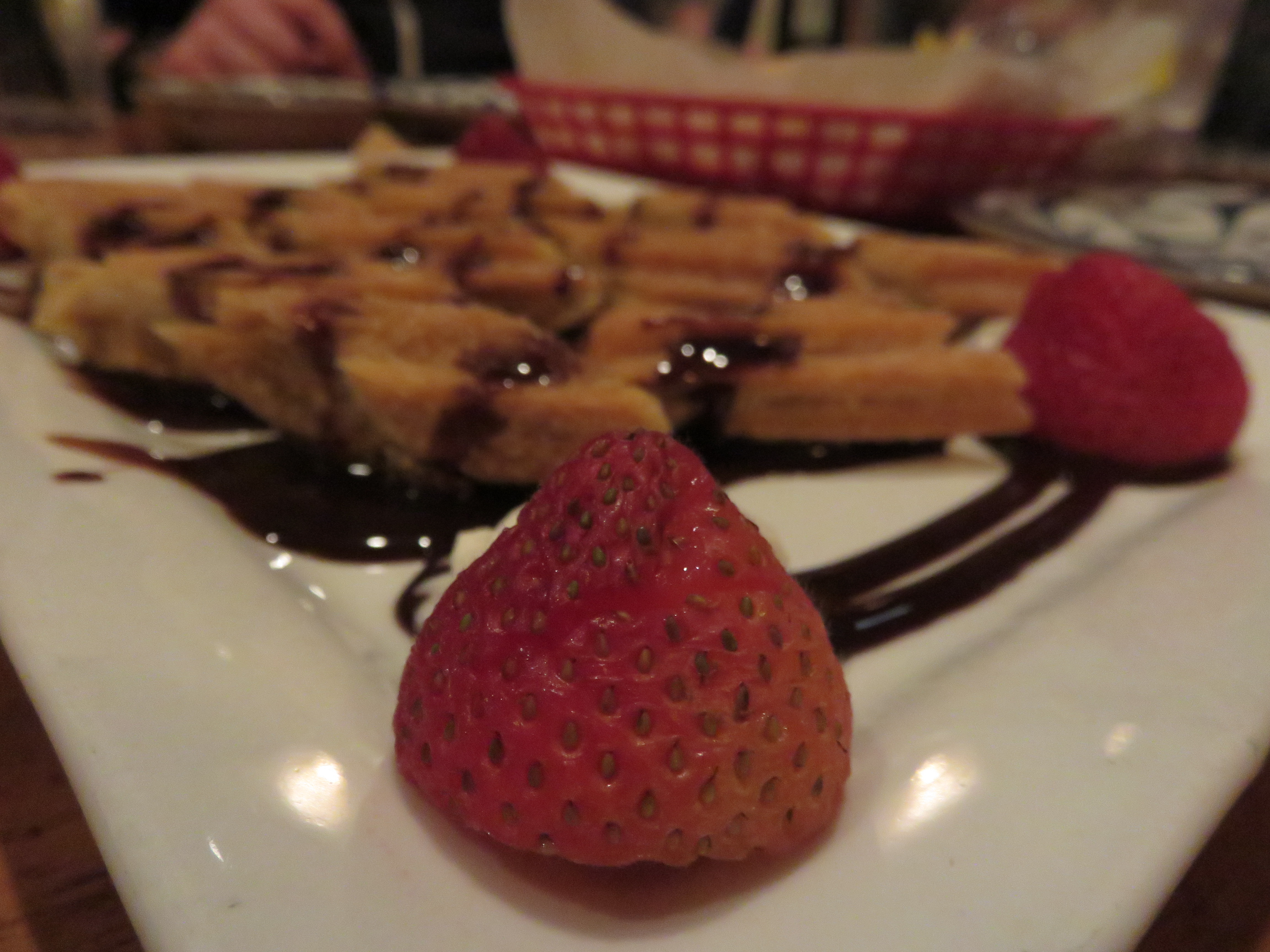 After enjoying the food, bowls of rice and beans were set on the table for us to enjoy while we waited for our dessert - Churros with caramel filling drizzled with chocolate sauce.
