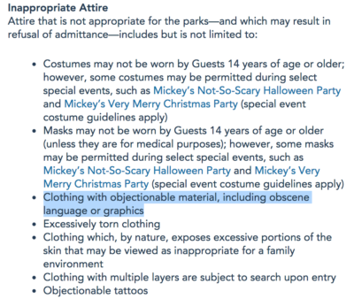 As Bill Nye once said, “There are no easy answers.” While Disney already has a policy against offensive shirts, there seems to be great confusion regarding what is offensive or not. For example, I take offense with the unlicensed shirts that say “She wants the D,” where the “D” is in Disney script. To me, that falls into the category of sexual innuendo, yet I see it all the time at Disney parks on both coasts. So strengthening this policy would likely have little to no effect.