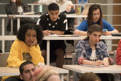 Referencing The Breakfast Club, Zoey quickly finds herself befriending some of her midnight classmates, all of them peculiar in their own way. Zoey appears to be closest to Molly Ringwald’s pretty and popular Claire. Her peers include a wild bisexual, a drug dealer, twins, and a Cuban republican. The pilot races through them all pretty quickly, but it’s assumed that the series will further develop each individual.