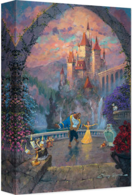 Timelines at Disney Parks sometimes get blurred and a perfect example is the way they handle characters from Beauty and the Beast. Visit the Enchanted Forest, where you can dine in Beast's Castle, and this becomes very apparent. Gaston still roams around the village, but Belle and Beast are devotedly in love with one another, but the curse isn't yet broken. James Coleman's "Beast and Belle Forever" calls that same contradiction in timeline to mind, where the pair have apparently danced all night and taken the party outside with all of the enchanted objects (poor Maurice). It brings back all the feelings of the classic film, while contradicting the story at the same time like a trip to Magic Kingdom. "Beast and Belle Forever" by James Coleman is available on canvas for $149.95.