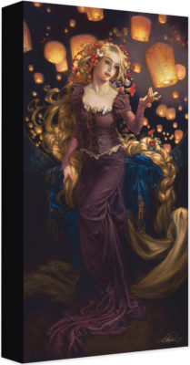 Rapunzel has finally made it to the floating stars in "I See the Light" by Heather Theurer. The look on her face as she sends up a floating lantern reveals a whimsical delight in taking part in this celebration of her birthday, while also coming to the realization that her priorities have now shifted to the handsome rogue who made all of this possible. Rapunzel is the perfect princess for art lovers, as she herself is an artist. She is depicted here in a style that calls to mind the neoclassical style that would have been in popularity at the time the story was originally written. "I See the Light" by Heather Theurer is available on canvas for $149.95.