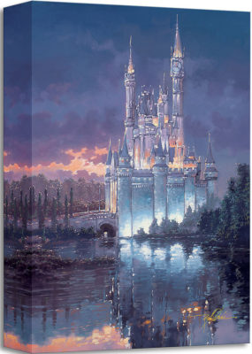 Rodel Gonzalez, who also painted the Seven Dwarfs in "Homeward Bound," beautifully captures the majesty of Cinderella Castle at Magic Kingdom at twilight. The lights have just recently turned on and the park is about to come alive in a different way. Fireworks are just around the corner, as families gather to celebrate the fun they shared that day. There's a twinge of sadness, knowing that as the evening ware's on, your time in this magic kingdom is coming to an end. But the gate will open again anytime your heart desires to return. This painting perfectly captures that kiss goodnight, a perfect souvenir from a Walt Disney World vacation. "Royal Reflection" by Rodel Gonzalez is available on canvas for $149.95.