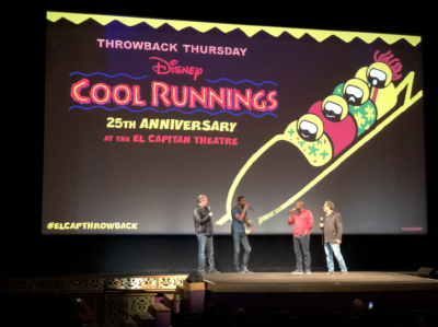 Before the screening, the El Capitan welcomed Director John Turteltaub to the stage, whose other Disney credits include The Kid, The Sorcerer's Apprentice, and the National Treasure films. He explained that the last time he saw Cool Runnings on the big screen was at the El Capitan on opening night (the theater had been under Disney ownership for just 2 years at the time). That particular screening was poorly attended, causing him to worry that the film would be a flop.