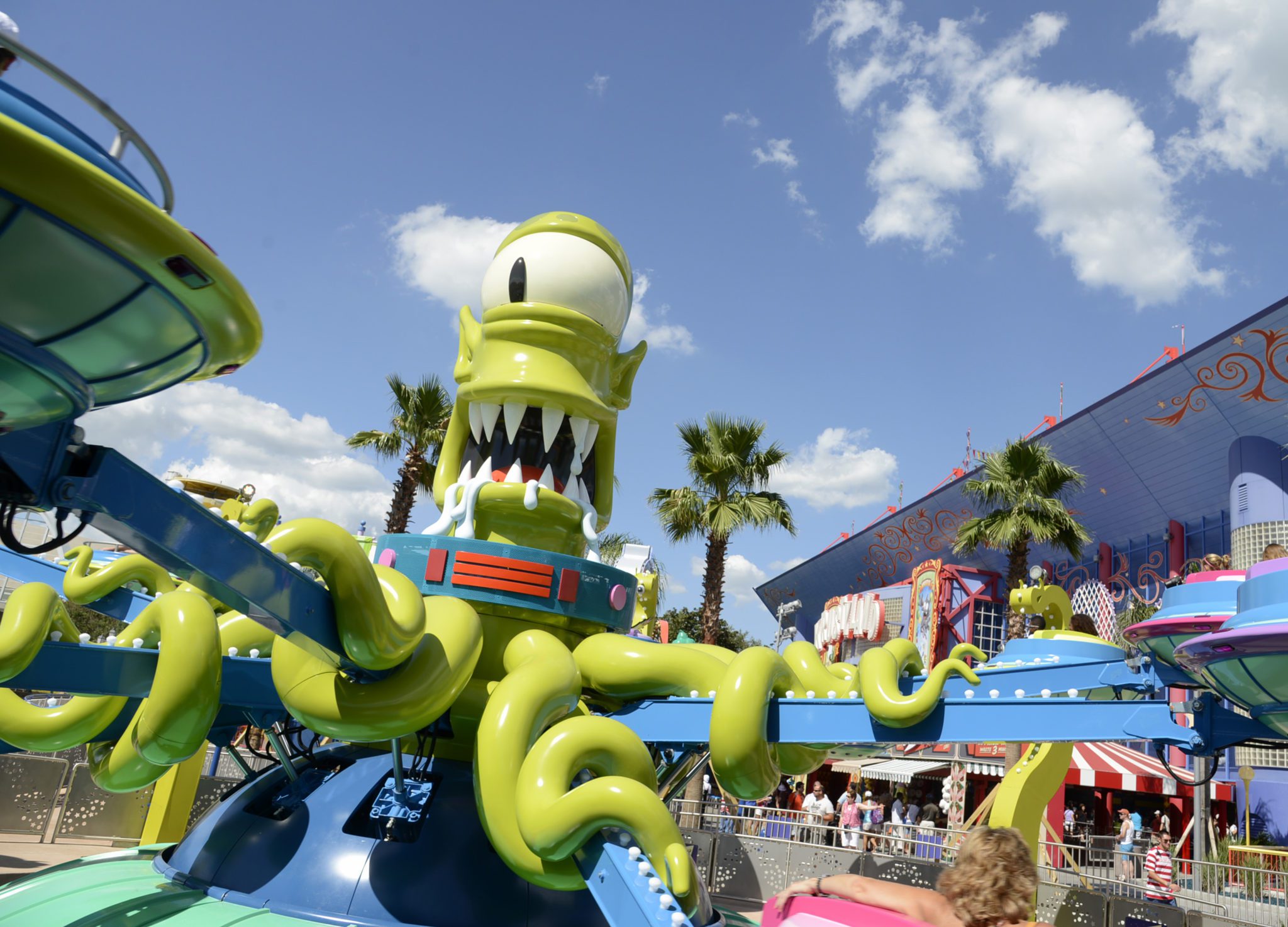 - Go for an intergalactic spin on the area’s new attraction, Kang & Kodos’ Twirl ‘n’ Hurl