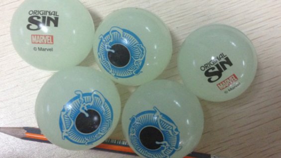 Marvel is giving away eyeballs to promote their upcoming Original Sin event. In the story, someone murders The Watcher and uses his eyes to find out the Marvel Universe's deepest secrets. But don't worry, the eyeballs given out at local comic book retailers are really just bouncy balls with an eye image printed on them. There is no word on how many of these promotional items were made, but you can find a comic book shop near you by visiting www.comicbookshoplocator.com To find out more about Original Sin, read our report.