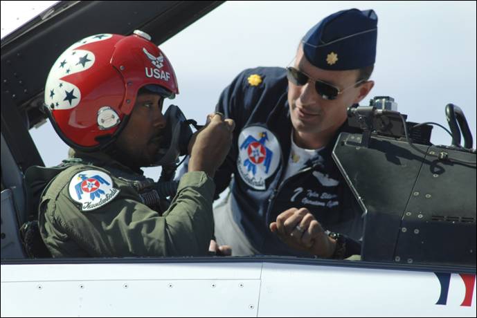 Falcon aka Anthony Mackie from Captain America: The Winter Soldier visited the US Air Force Thunderbirds in Las Vegas and flew in the F-16 Fighting Falcon.