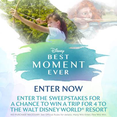 To enter, submit a photo that portrays a moment of achievement in any activity whether it be recreational, educational or a significant moment in time. With your photo, submit a caption that best describes your moment (less than 140 characters). Check out examples in the Best Moment Ever Photo Gallery and for more detailed instructions, visit Disney.com/BestMomentEver and read the official rules.