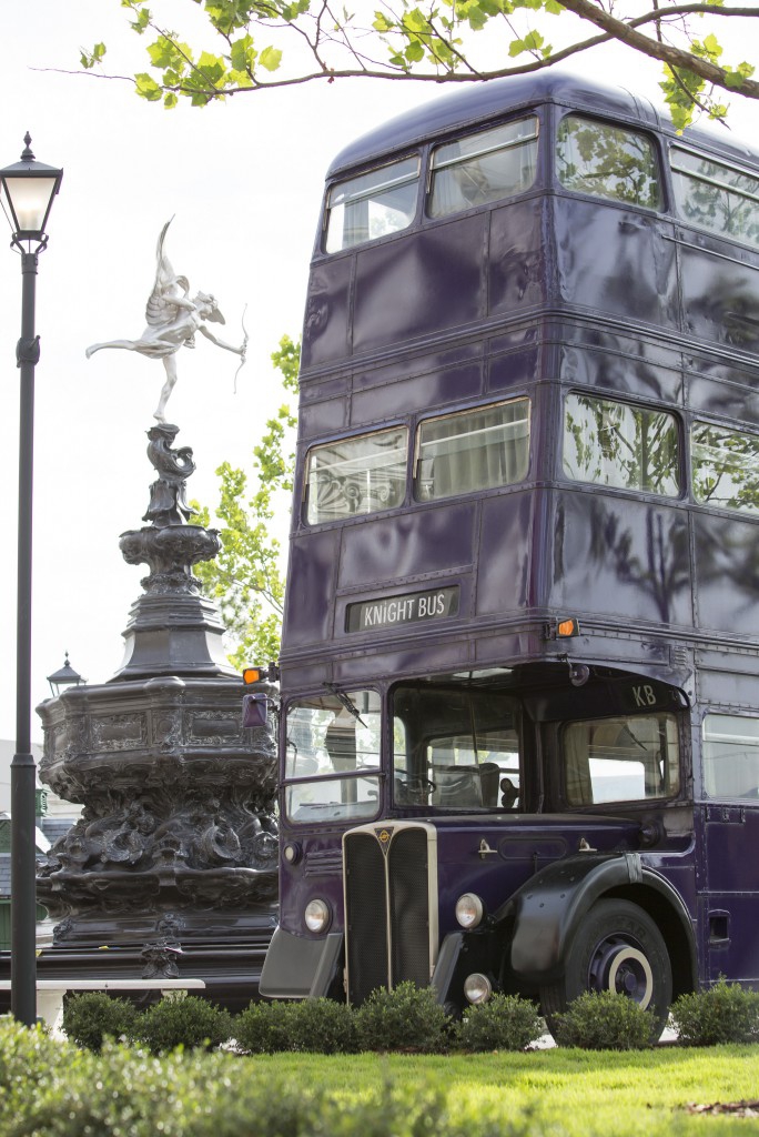 The Knight Bus, which provides emergency transport for the stranded witch or wizard in the Harry Potter books and films, is located in the London area of the new land. Guests will be able to meet and chat with the Knight Bus Conductor, and witness his rapport with the shrunken head hanging from the rear-view mirror. The iconic three-story, purple Knight Bus was inspired by its first appearance in the third film, “Harry Potter and the Prisoner of Azkaban.”