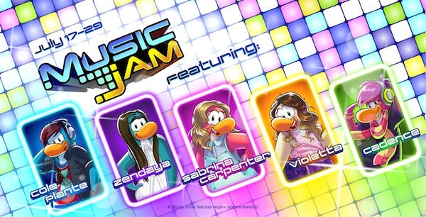 Club Penguin's Music Jam starts in Club Penguin on July 17 and it's going to be the loudest party ever! The music-mixing game, of DJ3K will be replaced by a BRAND NEW SoundStudio in the Dance Club! And, Cadence-dance expert and DJ extraordinaire-will celebrate her latest single, "Best Day Ever" with a special Music Cruise she'll bring to the island. Along with Cadence and the Penguin Band, Disney Channel star penguins DJ Cole Plante, Zendaya, Sabrina Carpenter, and Violetta, will perform. Everyone can watch the performances, check out the luxury liner, rock out, mix tracks and make music! Members can collect special exclusive clothing and items, get the Tour Bus Igloo, and save and share their SoundStudio tracks in the Dance Club to get Likes. Join the Music Jam July 17-29 at clubpenguin.com.