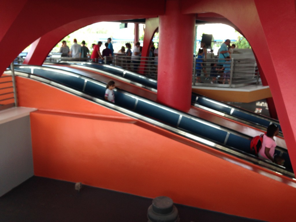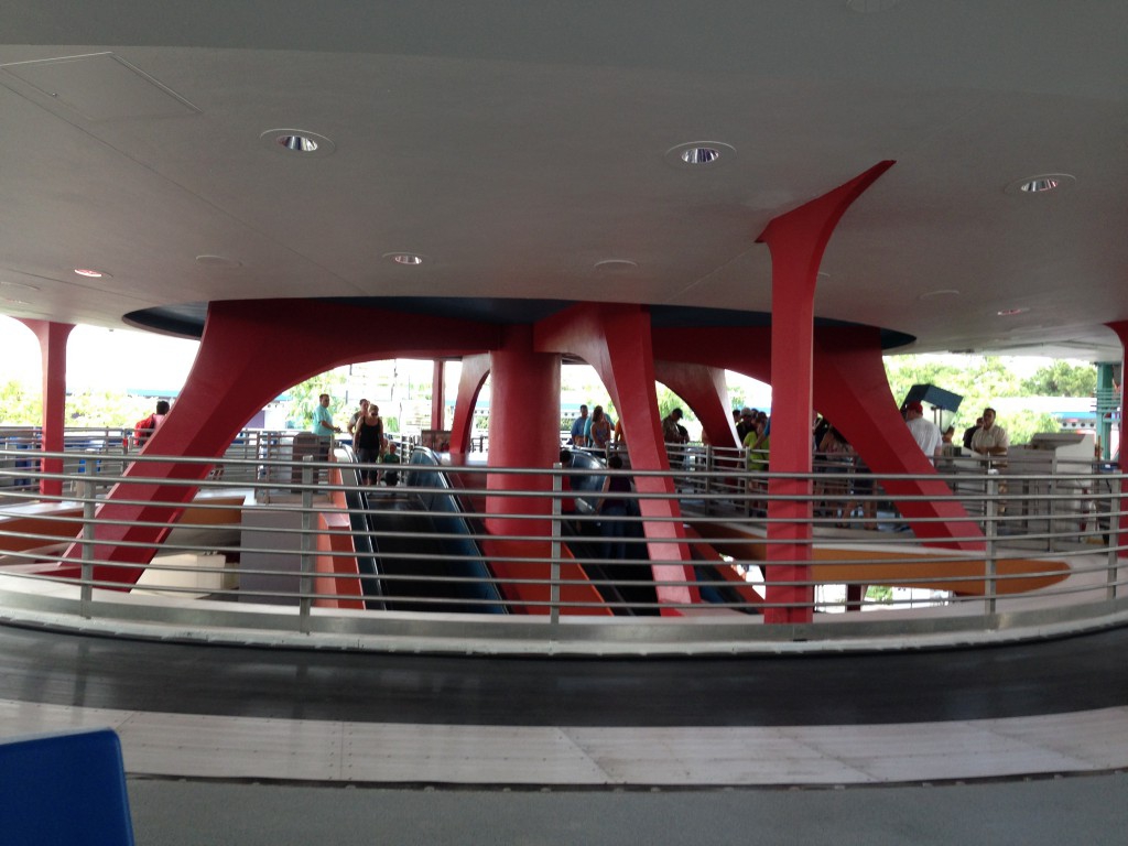 But something strange is afoot at the Magic Kingdom, while the TTA Peoplemover has been under refurbishment for the past few months it seems like someone got into the paint cans and started changing the scheme as they say. Going from the "futuristic" silver and blue to the "incredible" red and orange.