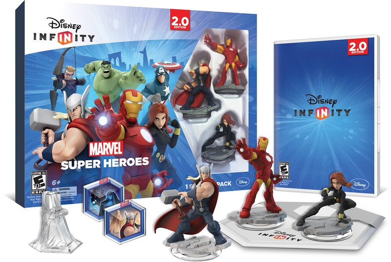 The Disney Infinity: Marvel Super Heroes Starter Pack features the 2.0 game software, the Disney Infinity 2.0 Base, Marvel’s The Avengers Play Set with three character figures (Iron Man, Black Widow and Thor), two Toy Box Game Discs, a web code card and countless hours of creative play in the all-new Toy Box 2.0. Marvel’s Spider-Man and Guardians of the Galaxy Play Sets, along with additional figures from those worlds, will be sold separately. All characters and Power Discs from last year’s release of Disney Infinity are compatible with Toy Box 2.0.