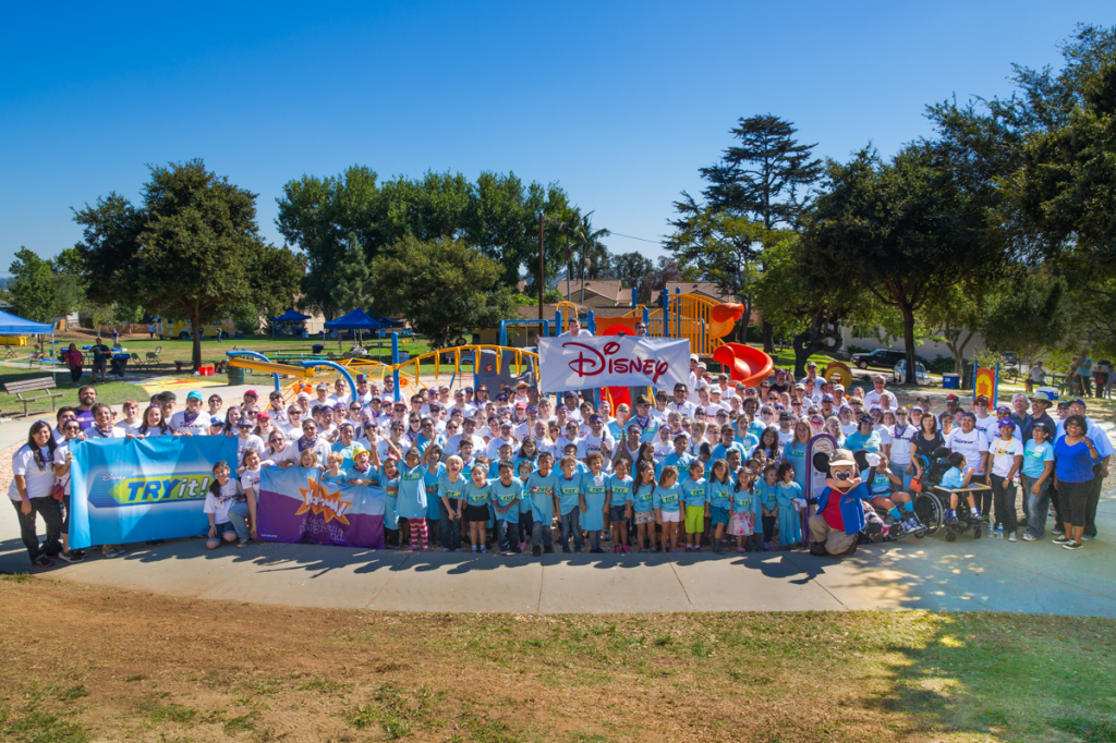 As of today, nearly 11,000 Orange County children have a great new place to play. More than 200 volunteers from the city of La Habra (@LaHabraCA), KaBOOM! (@kaboom) and the Institute for Healthcare Advancement joined Disney VoluntEARS (@CitizenDisney) to deliver a new kid-inspired playspace in fewer than eight hours at San Miguel Park (981 N. Euclid St.) in La Habra. The playground design is based on children’s drawings created at a special event earlier this year.