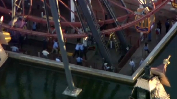 The incident was initially reported to the CBS2 newsroom by a viewer, who called around 5:18 p.m. The viewer had indicated that riders had been stuck for about 30 minutes. Aerial footage from the channel showed cast members at the theme park manually removing passengers.