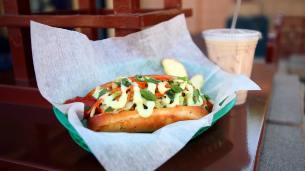 Inspired by the streets of San Fransokyo, the city where Disney’s “Big Hero 6” takes place, try the teriyaki street dog at Award Wieners in Disney California Adventure park. This teriyaki-glazed all-beef hot dog is served on a garlic chive roll, topped with wasabi mayonnaise, and ginger, carrot and cucumber slaw. There’s also a deliciously refreshing coconut milk tea, served cold with coconut and lychee flavors. These limited-time offerings are as unique as they are tasty.