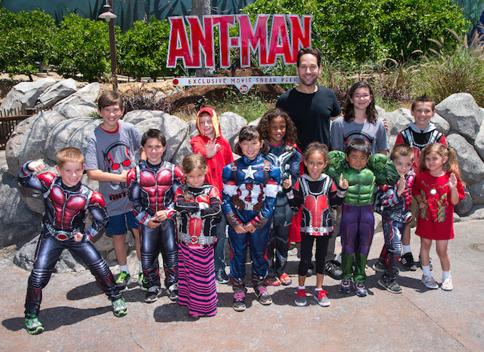 Paul Rudd Visits Ant-Man Sneak Peek at Disney California Adventure by Laughing Place Disney Newsdesk | Jun 26, 2015 8:55am (Pacific) Tags: Ant-Man, Disney California Adventure, Disneyland Resort, Marvel Paul Rudd surprised costumed fans at the exclusive Ant-Man sneak peek at Disney California Adventure park in Anaheim, California. The Ant-Man exclusive sneak peek is now running at Disney California Adventure park. Ant-Man opens in theaters July 16.