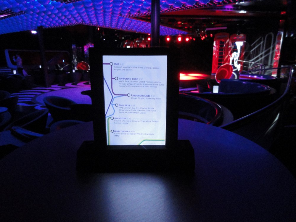 Waiter said occasionally he sees people swiping on the menu like they're trying to see a new page. Hilarity ensues.These are not the first backlit menus Disney has done. Some of the adult areas on the Disney Dream and Disney Fantasy cruise ships have had backlit menus since their inception in 2011 and 2012 respectively. A quick search of the net also turned up the news that Epcot's Le Cellier added backlit menus in 2013.