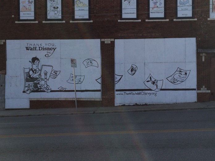 Incidentally, our Executive Editorial Director, Kyle Burbank, recently visited the building which is now adorn with an image of Walt as well as artwork from several other cartoonists who have been influenced by him: