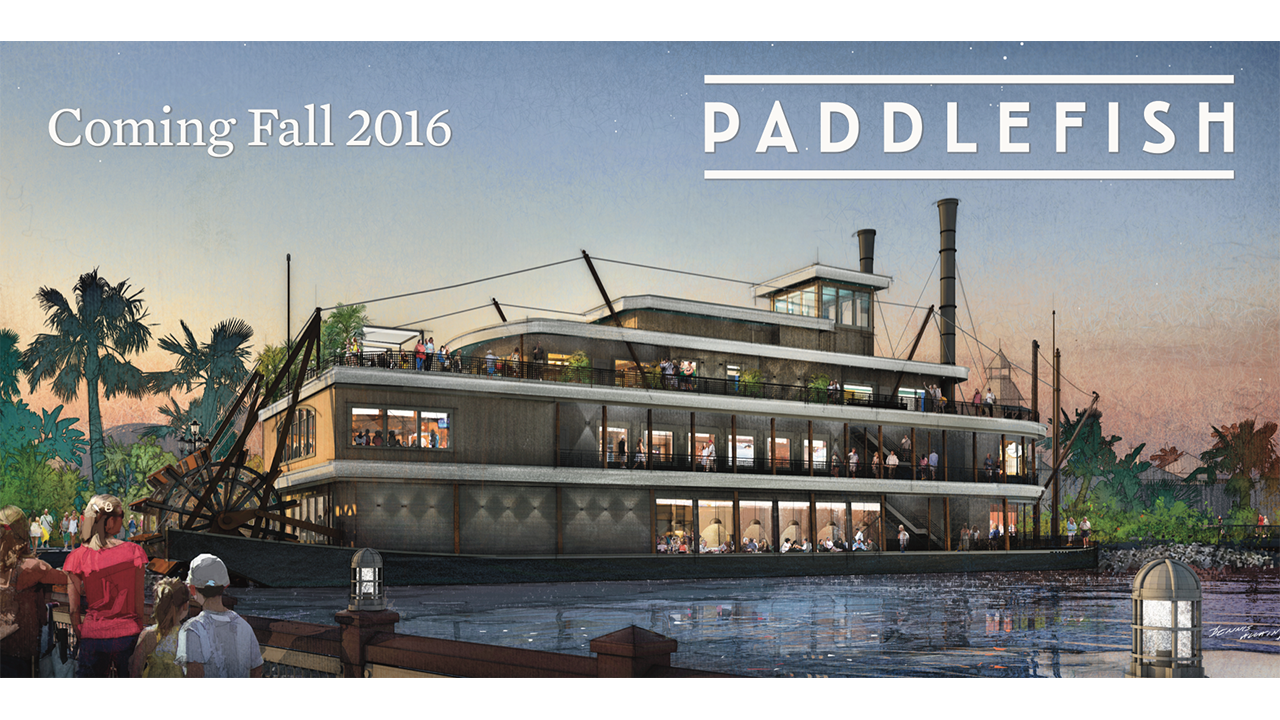 The Disney Parks Blog has announced that the restaurant formerly known as Fulton’s Crab House would reopen under the name Paddlefish this fall. The steamboat restaurant will be completely transformed and will offer a new seafood-centric dining experience that will be open for lunch, dinner and Sunday brunch.