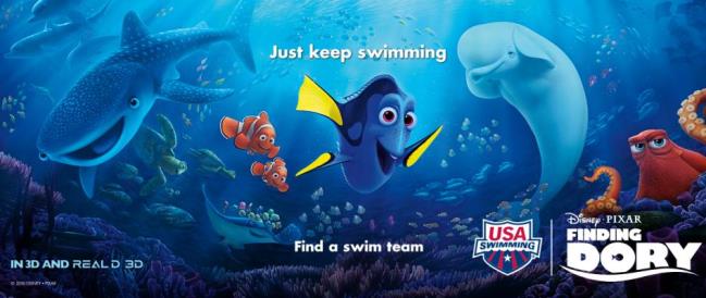 “Dory and SwimToday have one important key message in common – we want everyone to ‘Just keep swimming’, but more importantly we want moviegoers to join a swim team,” said USA Swimming’s Chief Marketing Officer Matt Farrell. “’Finding Dory’ will be instrumental in our SwimToday marketing to invite non-swimmers to be a part of the funnest sport and be more like Dory, Nemo and friends.”