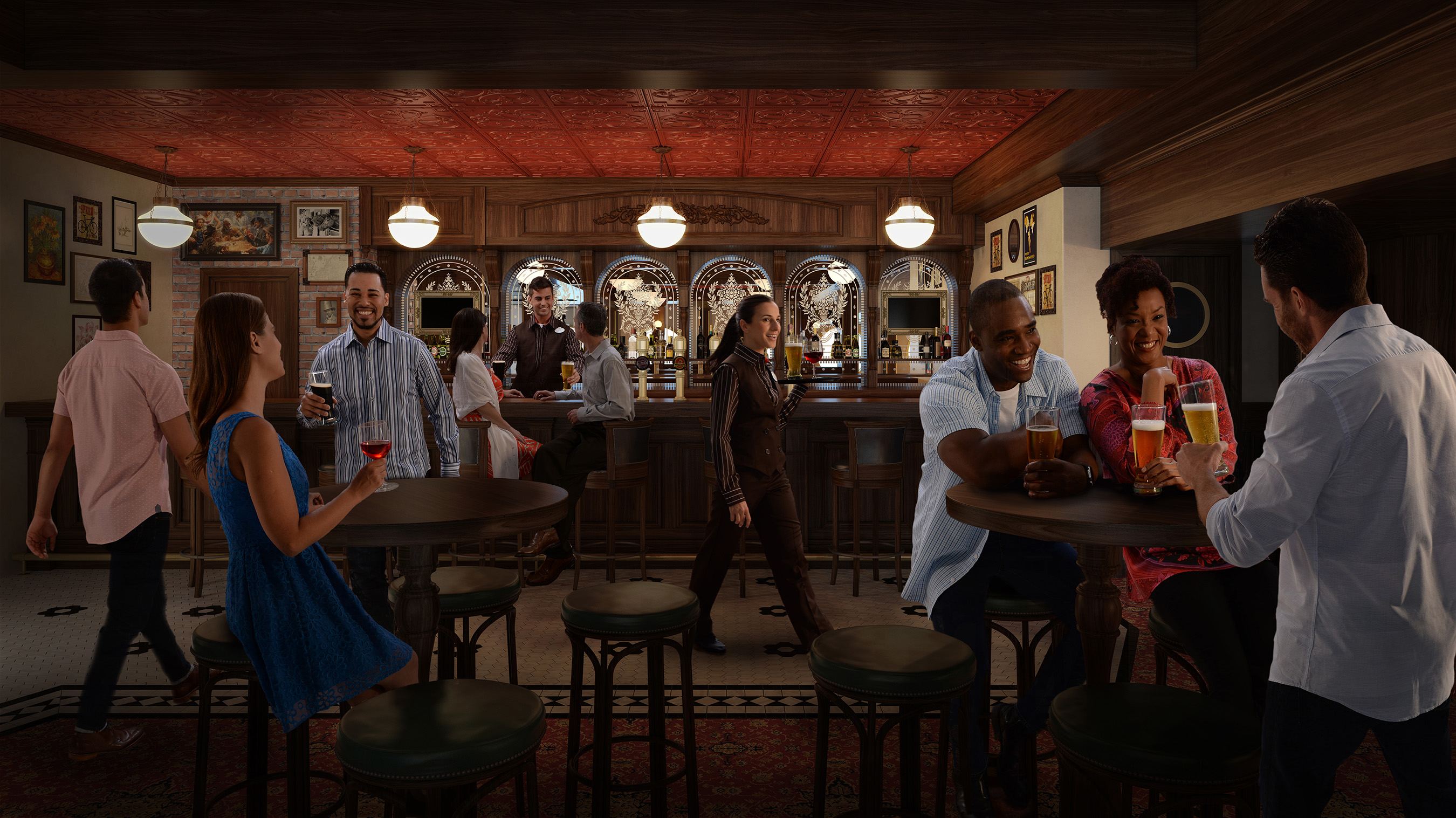 The adult district includes a brand-new pub that invites guests to take a jaunt to an authentic English tavern. Dark woods, plush leather furniture and brass accents are reminiscent of a friendly neighborhood pub. Of course, a selection of British and specialty beers create the perfect pub atmosphere, where adult guests can sip a pint or cocktail, or sample a brew made especially for the pub.