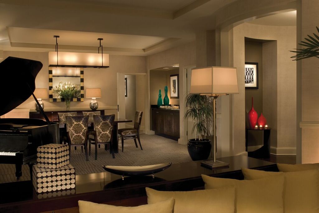 The Walt Disney World Swan and Dolphin Resort offers 12 presidential suites featuring elegant bathroom and bedroom appointments richly designed in residential-style décor. Presidential suite amenities include multiple flat-screen TVs, deluxe private bathrooms, Westin Heavenly Beds, kitchens with a private bar and dining room table and extraordinary views of Walt Disney World Resort.